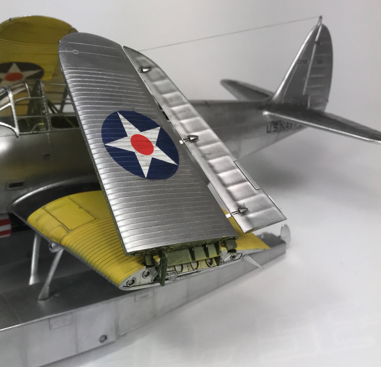 실전에 사용된 내용은 확인을 못했네요... 어뢰의 색칠도 시험용인듯한데 아마도 시험용기체만 생산하고 빠르게 던틀리스와 어벤져로 교체된 기체로 보입니다. 키트는 흠잡을데 없지만 같은 시리즈인 랜딩기어 장착된 통상형태의 함상기 부품은 안들어 있고 이 형태만 만들수 있습니다.
