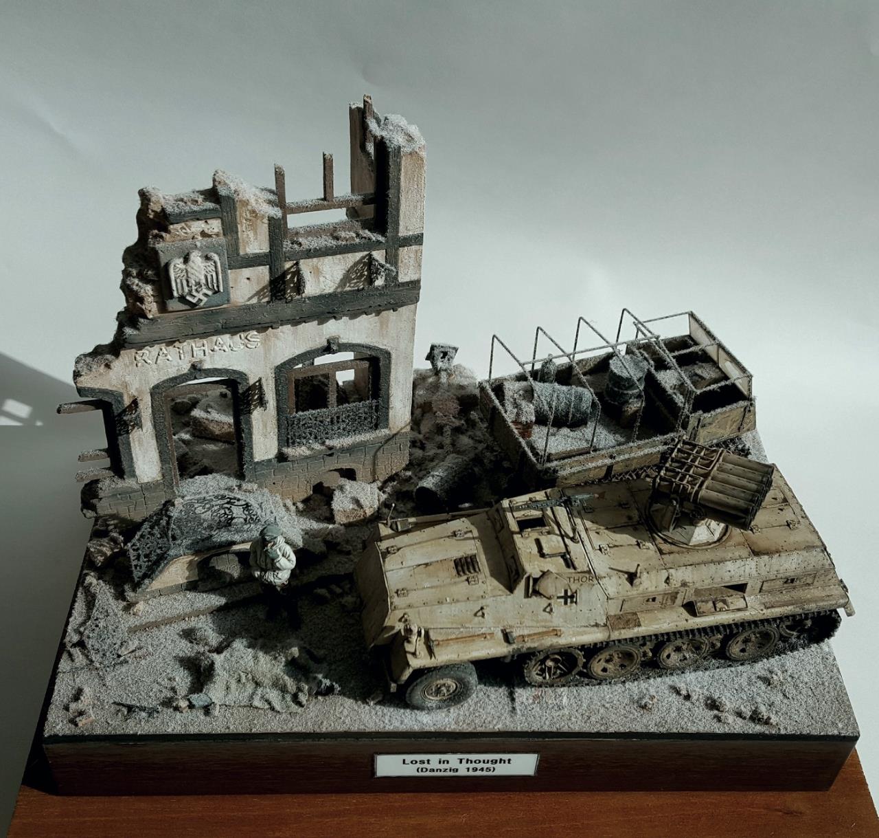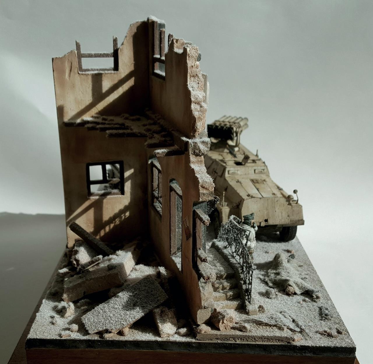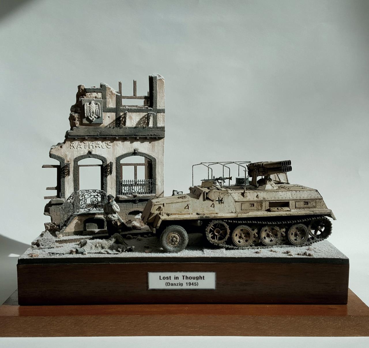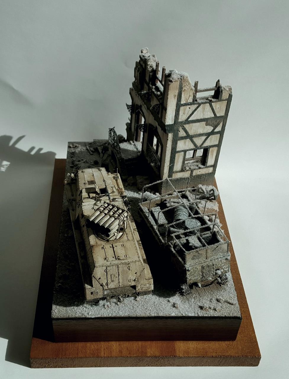 2명의 레진 인형과 소장중인 완성작을 배치하고 장비품과 잔해들을 좀 더 추가하였습니다. 베이스도 자작하여 한단 더 추가하였습니다.