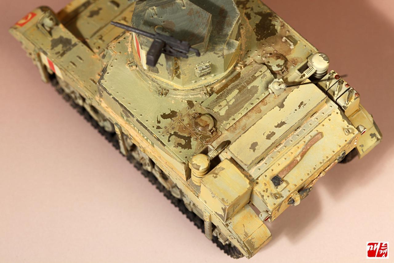 습작으로 생각하고 작업한 'M3 스튜어트 허니'가 완성되었습니다. 아카데미 제품을 사용하였으며, 설명서에 있는 도색 가이드 대신 AK의 도색 프로파일을 따라서 도색해봤습니다. 기본색은 에나멜 도료인 '올리브드라브'을 기본색으로 했으며, 북아프리카 영국군 도료인 아크릴 도료(AK4031, 4032, 4033)를 주로 사용했습니다. 표면에 마감을 해주고 마지막으로 유화로 워싱 해주었습니다.