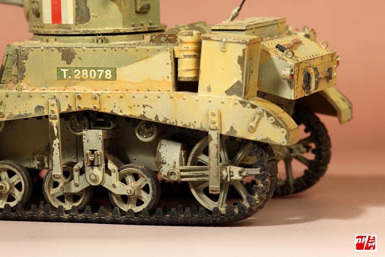 작업중에는 기관총 3개는 총열이 막혀 있기에 핀바이스로 뚫어 주었으며, 궤도와 기관총에는 4B 연필을 이용하여 흑연으로 터치를 해주었습니다. 또한 궤도에는 피그먼트를 통해서 녹 표현을 해주었으며, 사막먼지 피그먼트를 구석진 부분에 적용해서 북아프리카 분위기를 내보았습니다. 엔진 그릴 주변에 주유구 2곳에는 기름때와 연료 흘린 자국을 표현해주고, 번들거리는 표현을 유광으로 해주었습니다. 치핑은 AK의 치핑 세트를 사용했으며, 데칼은 키트에 들어있는 것을 사용했고, 전조등은 백색으로 붓칠해주고 이어 바로 희석한 무광검정으로 주변에 흘려주어서 전조등에 입체감을 주었습니다. 후미등의 경우는 설명서에 특별한 언급이 없기에 그냥 상상으로 붓 칠 해주었습니다. 추가된 부품은 미션트랜스미션 위에 상판에 손잡이가 없어져서, 황동으로 자작해주었습니다.
