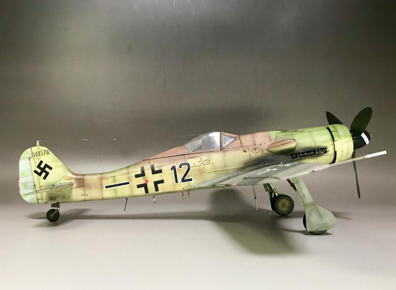 안녕하세요. 이번에 작업이 끝난 fw190 d9 blue12입니다. 참고한 일러스트를 보는 순간 똑같이 작업하고 싶어 인터넷으로 사용하는 색상을 찾아 보았지만 명확한 색상이 나와 있지 않았습니다. 그래서 참고 일러스트와 같은 색상으로 작업하게 되었습니다. 이 킷은 하세가와 킷인데.. 다들 알고 계시겠지만 이 킷은 리벳이 생략되어 있습니다. 리벳기로 리벳 표현 작업을 진행하였고 총열부분과 피토관은 니들과 황동관을 이용하여 표현해 주었고 시트벨트 및 데칼은 별매 제품을 사용하였습니다. 기체 색 표현을 위해 이스라엘군 연두색과 한국군 흰색을 조색하여 사용하였고, 기체 하부색은 이스라엘군 갈색과 한국군 흰색을 조색해 사용하였습니다. 캐노피는 열린 상태와 닫힌 상태 모두 맘에 들어 고정하지 않고 두가지 표현을 할 수 있게 해 놓았습니다. 가동식은 아니고요..^^;; 나름 일러스트와 비슷하네요^^. 프롭기는 여러가지 표현을 할 수 있어서 재미 있게 작업했습니다. 즐겁게 감상 부탁 드립니다.^^