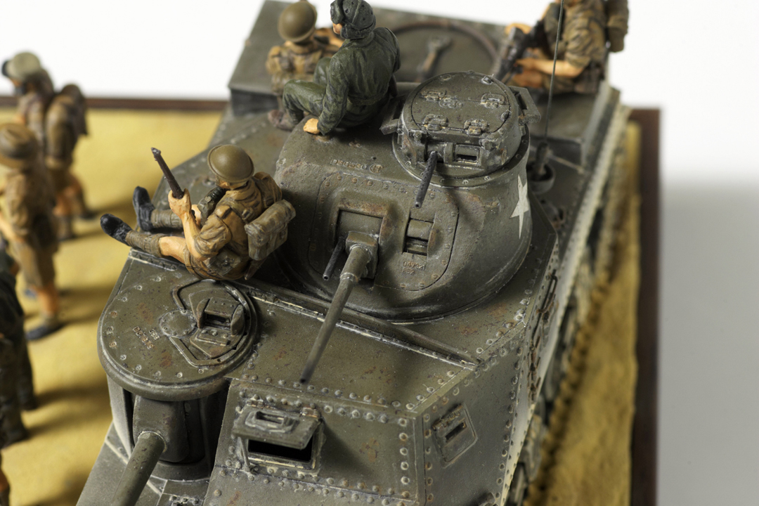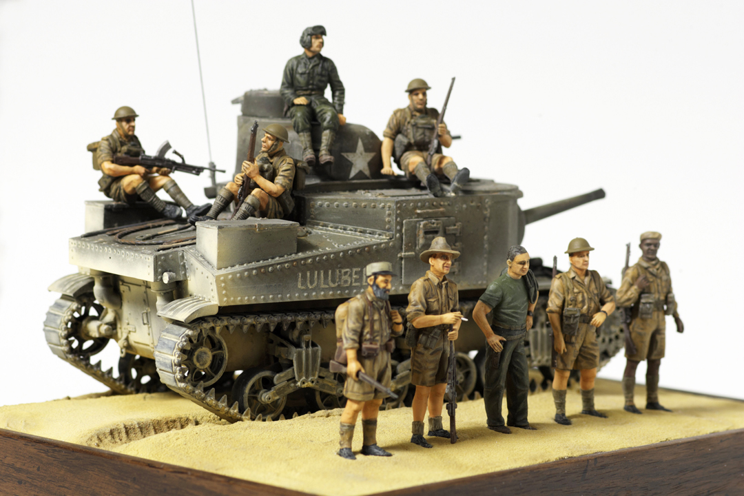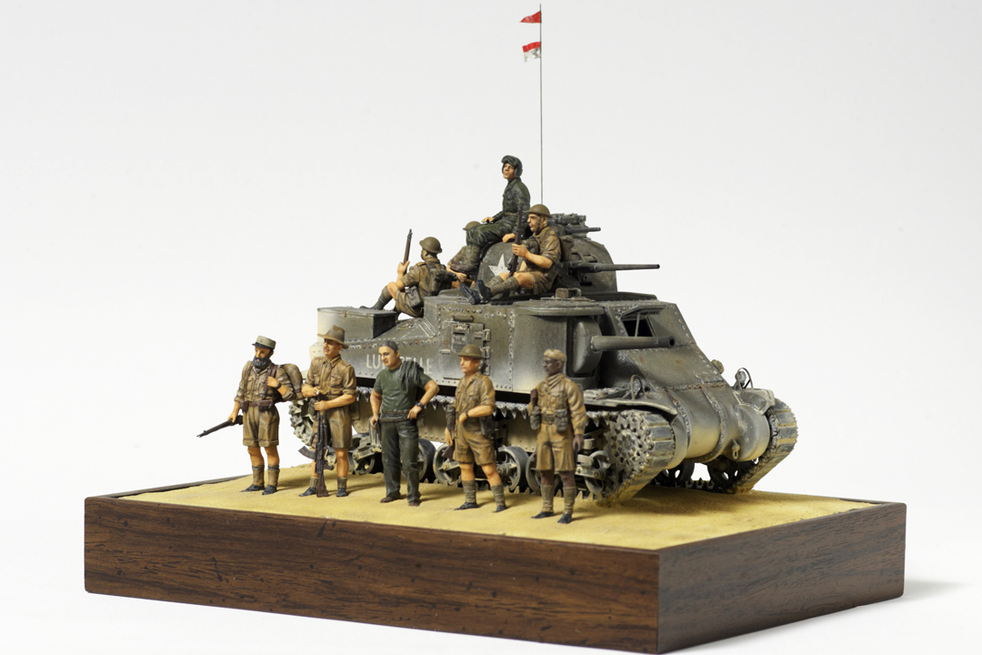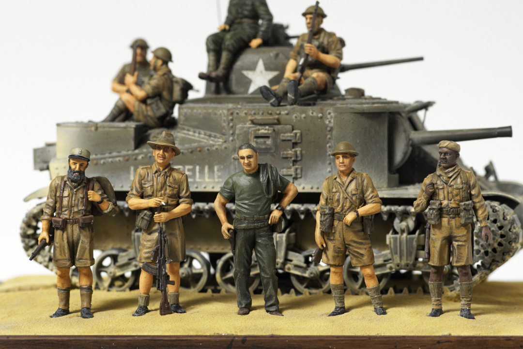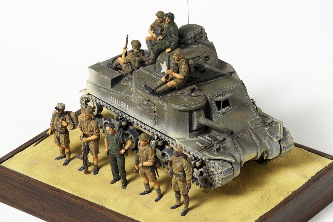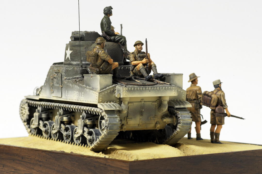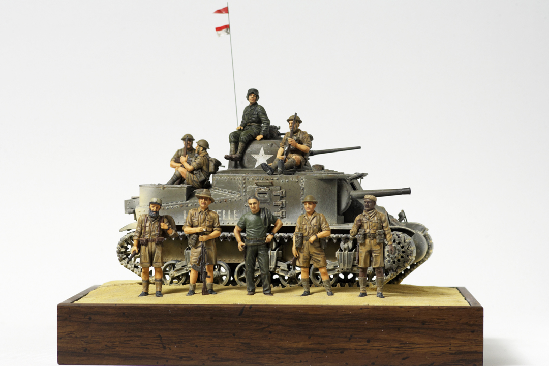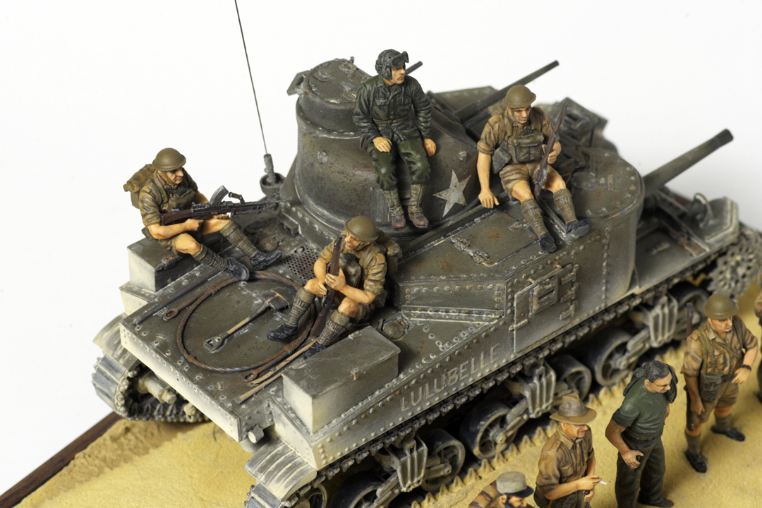 안녕하세요. M3 LEE Early 사하라 전차대입니다. M3 Lee 는 Takom 제품이고 앞줄의 피규어는 MasterBox 의 Allied Forces 입니다. 전차에 탑승한 피규어는 MiniArt 피규어중 일부를 사용했습니다. 전차의 도색은 미그 아크릴이고 먼지표현도 미그 이펙트 도료를 사용했습니다. 피규어는 타미야 아크릴 도색후 타미야 에나멜로 명암을 줬습니다. 지면은 핸디코트 바른후 타미야 디오라마텍스쳐 샌드를 썼습니다.
