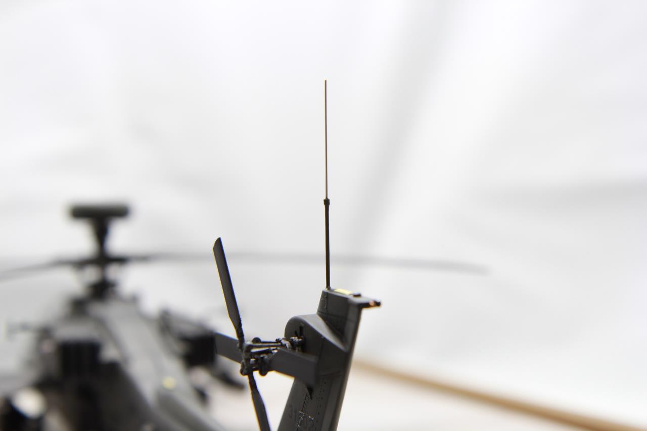 수평안정판은 아파치의 비행특성을 고려하여 부착한 공기 유도핀?도 0.2mm 프라판으로 재현했습니다.
