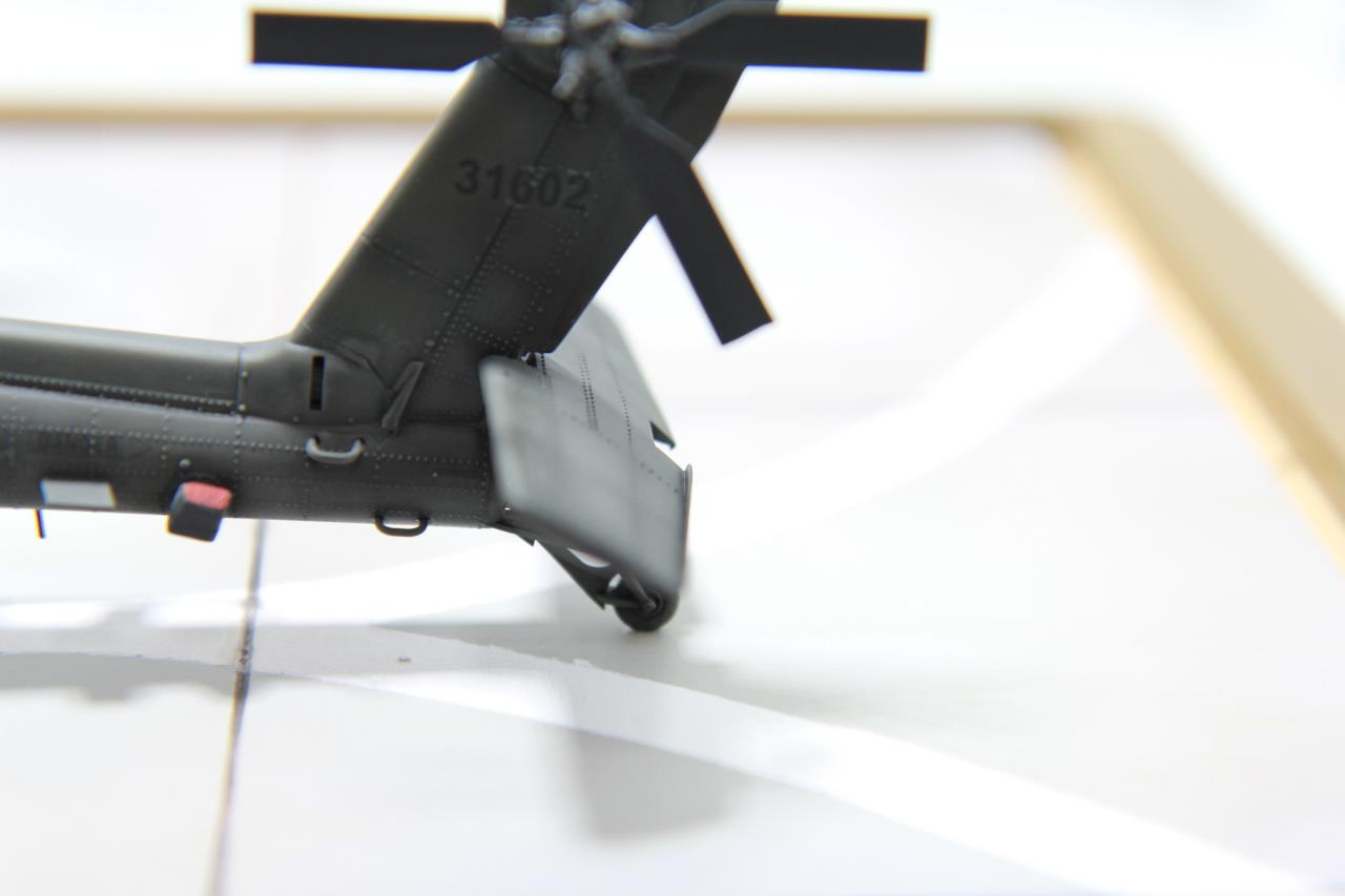 가디언 특징인 좌측 전자장비실 냉각용 팬을 표현하였습니다. 원래는 팬 바깥쪽에 그물망이 있지만 키트가 작아서 생략하고 그냥 만들었습니다. 테일붐 좌,우측의 레이져 경보수신기는 미군 가디언 제작시 본떤것을 이용해서 레진으로 복재했습니다.