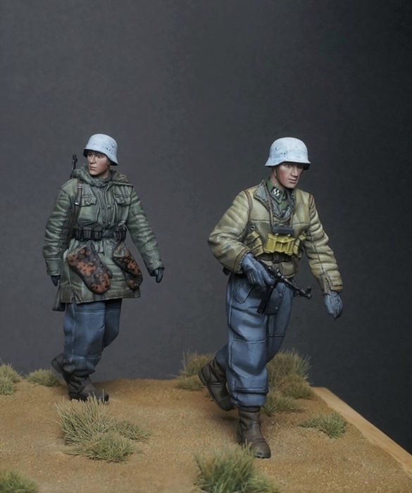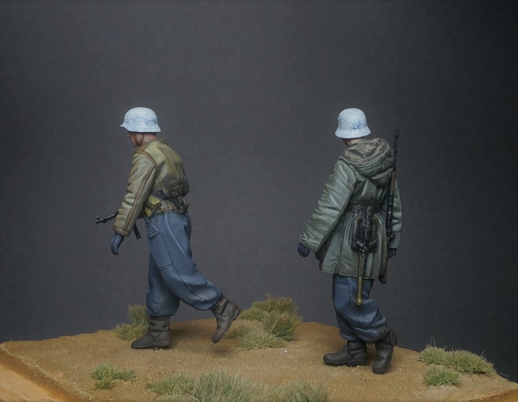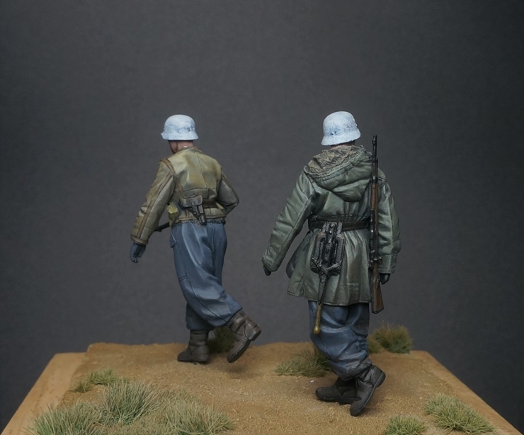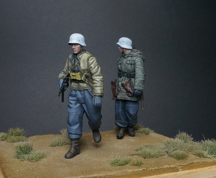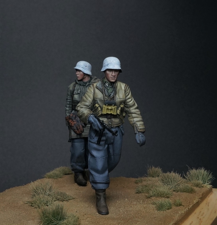 알파인사의 독일군보병세트입니다. 좋은 제품이지만 얼굴칠하는데는 조금 힘든 작업이었습니다. 알파인 제품은 얼굴이 리얼하고 다양하지만 과장되지 않은 묘사라 쉽지 않습니다. 앞선 작품을 구매하신 수집가께서베이스에 같이 올리고싶으시다고 추가 의뢰하셔서 진행한 작품이라 베이스는 간단하게 만들어서 임시로 적용하였습니다.