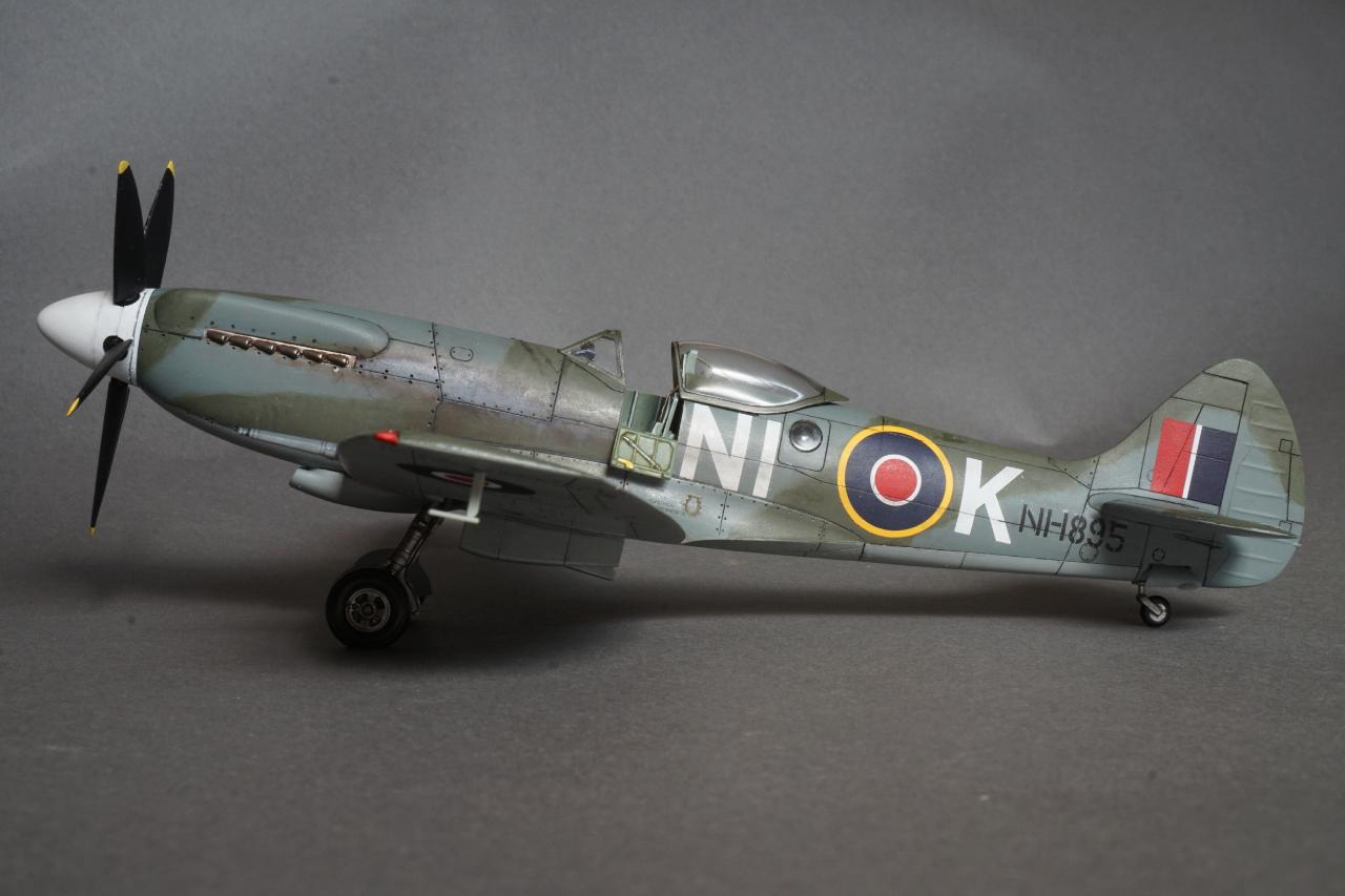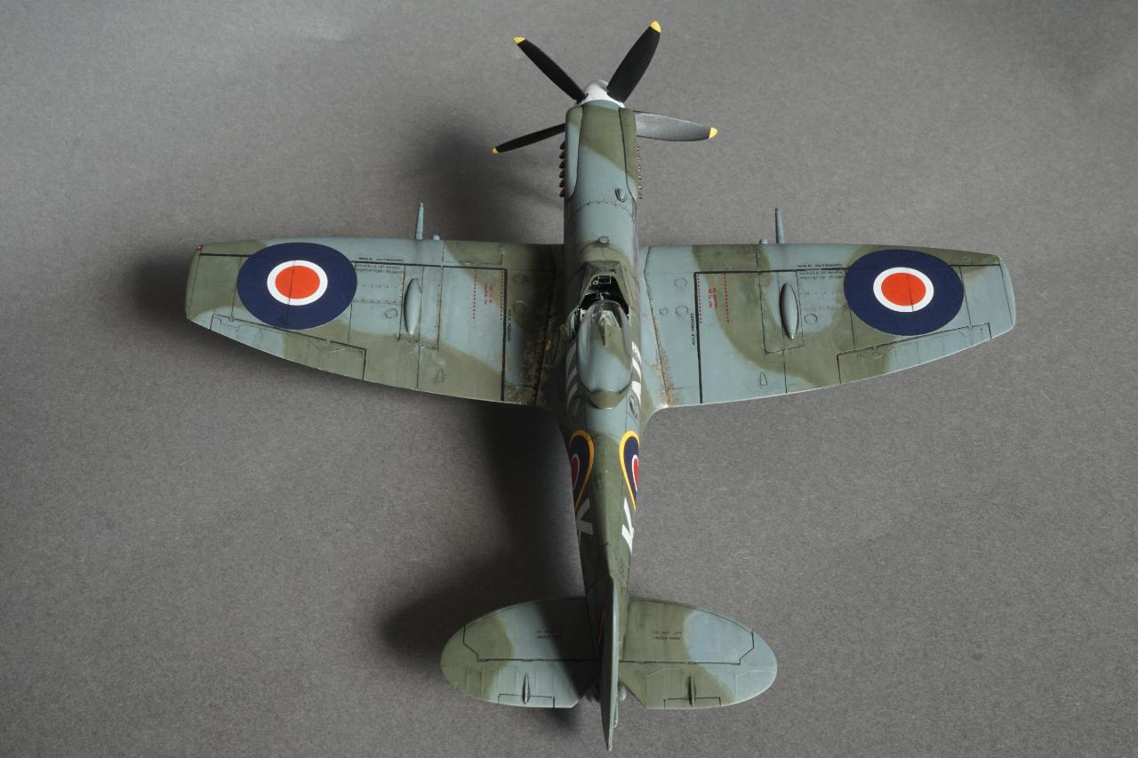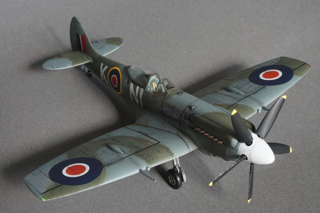 특징으로는 사진 정찰을 할 수 있는 전투기로 동체 후방에 카메라 창이 있고 저고도 작전에 최적화하기 위한 끝단이 짧은 날개로 셋팅되어 있습니다. 당시 많은 스핏파이어가 스피너와 기체 식별문자를 스카이로 칠한 것과는 달리 흰색이며 기체 사진을 보면 동체 후부에 띠 부분을 덧칠한 것 같은 자국도 있는데 데칼을 붙이고 나서 발견하는 바람에 넘어갔습니다. 그리고 이유는 알 수 없지만 그리폰 엔진으로 넘어오면서 프로펠러 회전방향이 반시계방향으로 멀린 엔진과는 반대로 되었습니다. 당시 조종사들이 어떻게 받아들였는지 궁금지는 부분입니다.