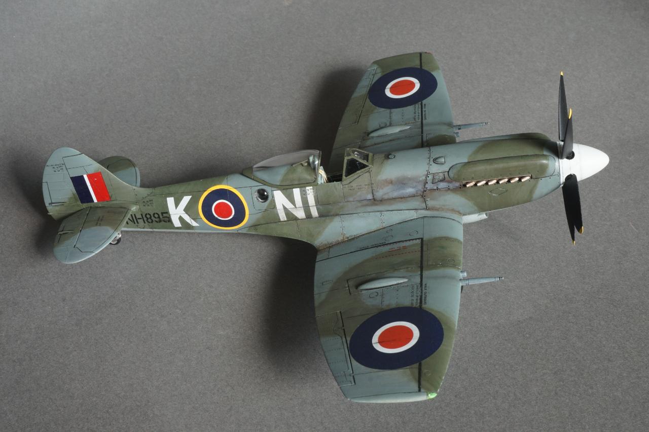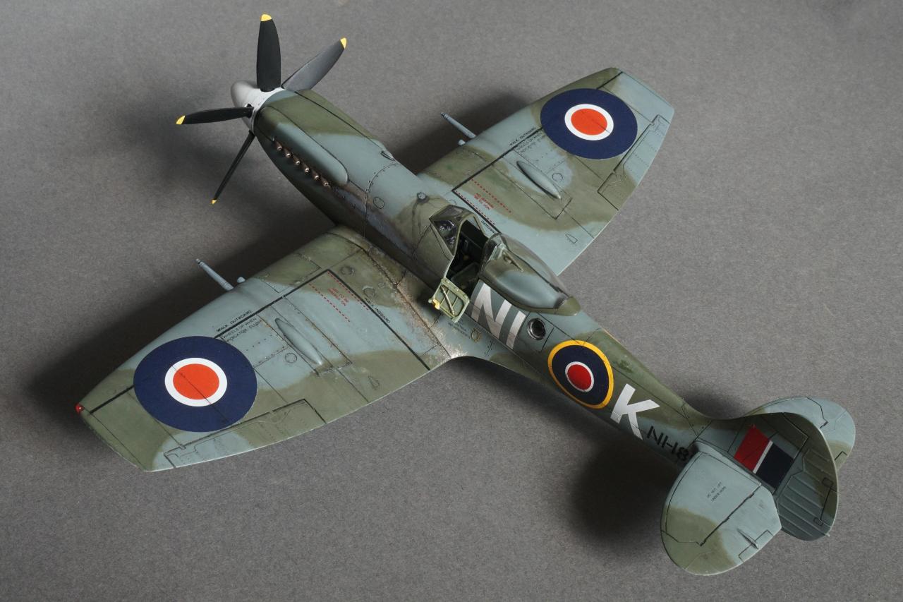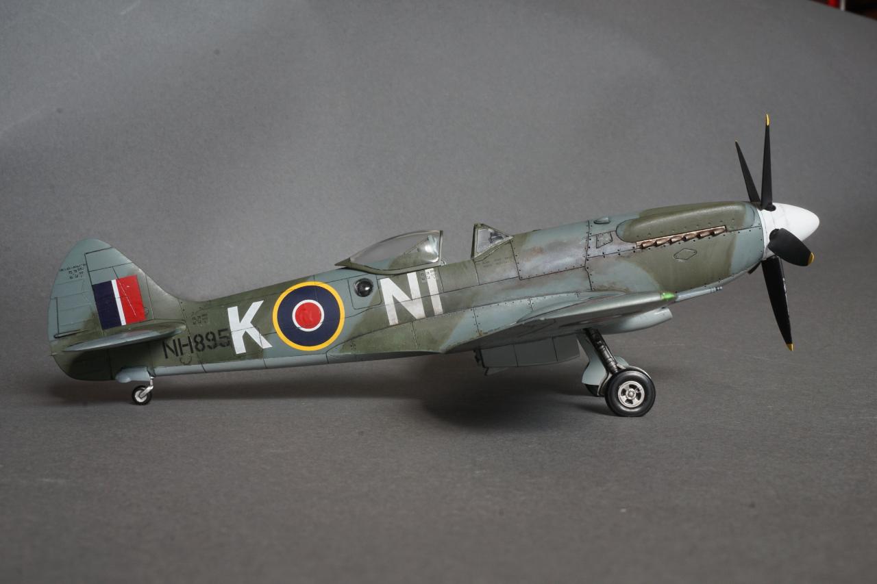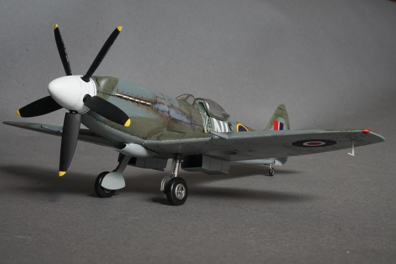 특징으로는 사진 정찰을 할 수 있는 전투기로 동체 후방에 카메라 창이 있고 저고도 작전에 최적화하기 위한 끝단이 짧은 날개로 셋팅되어 있습니다. 당시 많은 스핏파이어가 스피너와 기체 식별문자를 스카이로 칠한 것과는 달리 흰색이며 기체 사진을 보면 동체 후부에 띠 부분을 덧칠한 것 같은 자국도 있는데 데칼을 붙이고 나서 발견하는 바람에 넘어갔습니다. 그리고 이유는 알 수 없지만 그리폰 엔진으로 넘어오면서 프로펠러 회전방향이 반시계방향으로 멀린 엔진과는 반대로 되었습니다. 당시 조종사들이 어떻게 받아들였는지 궁금지는 부분입니다.