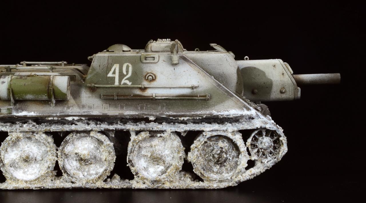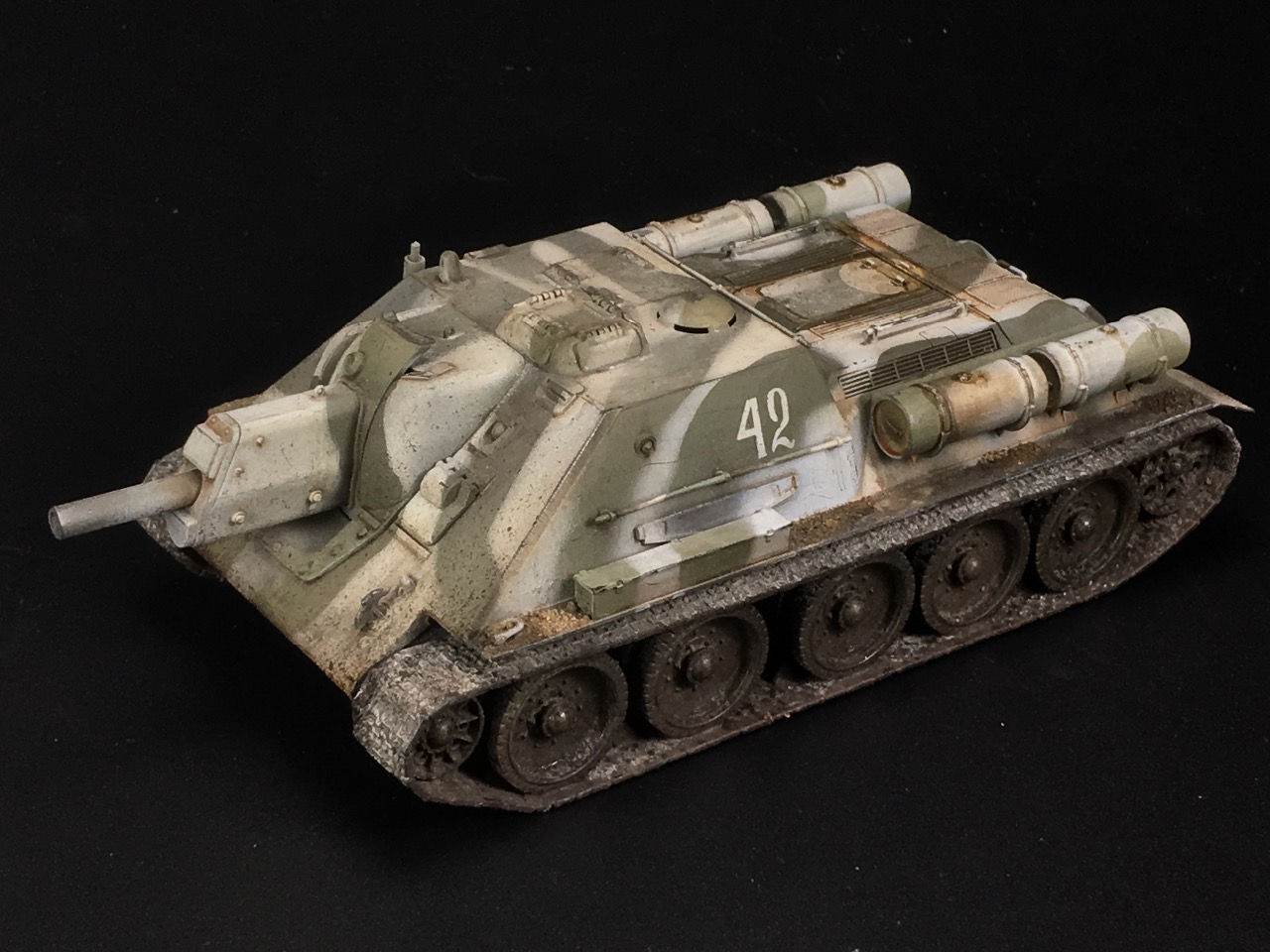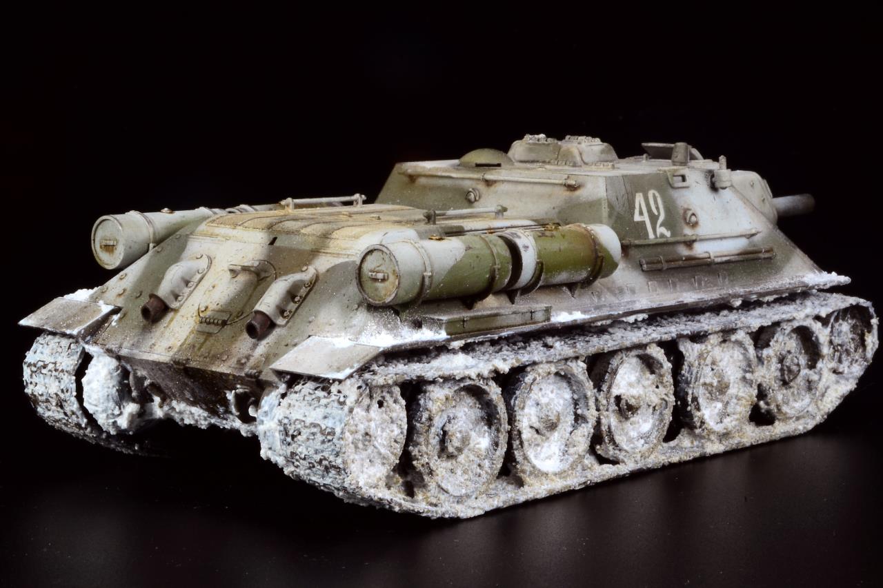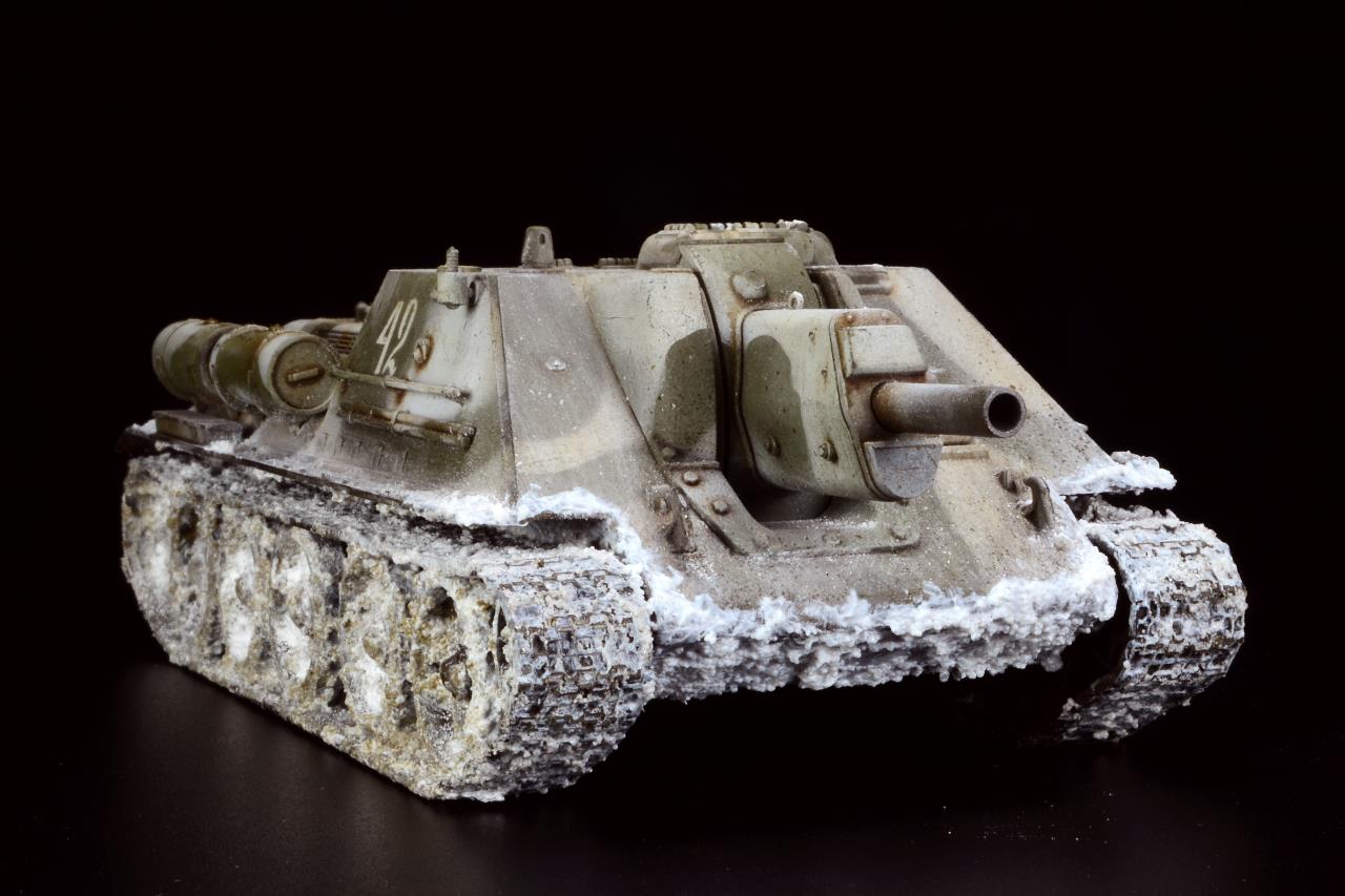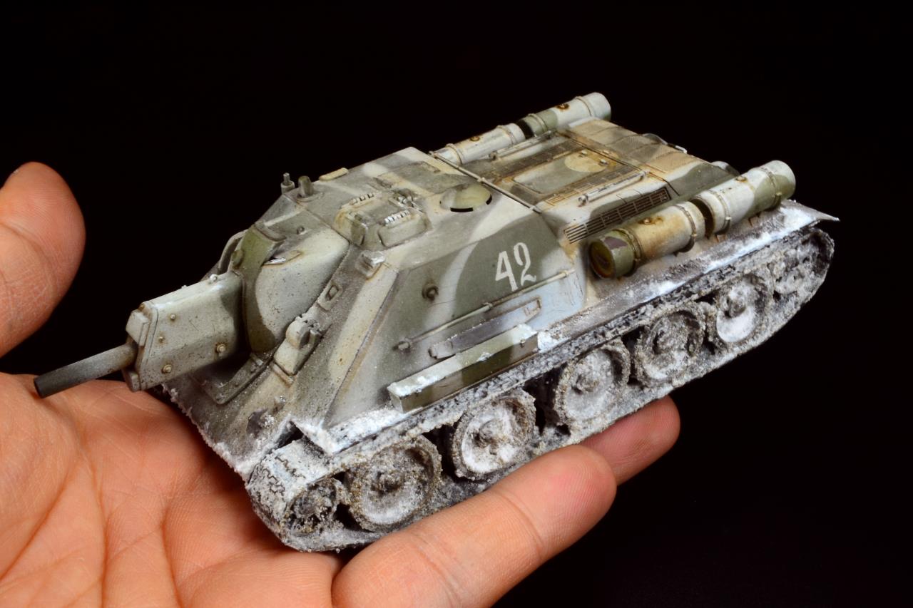 타미야의 1/48 스케일 SU-122 이구요, 동계위장에 눈이 많이 묻은 하부를 재현해 봤습니다 ^^