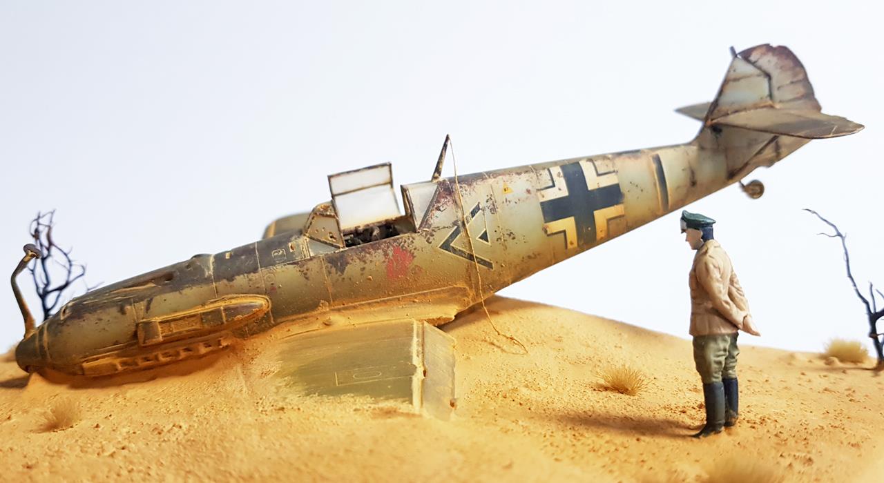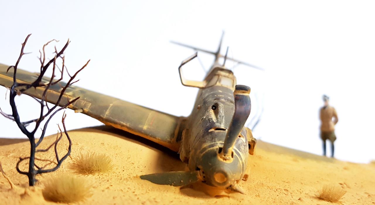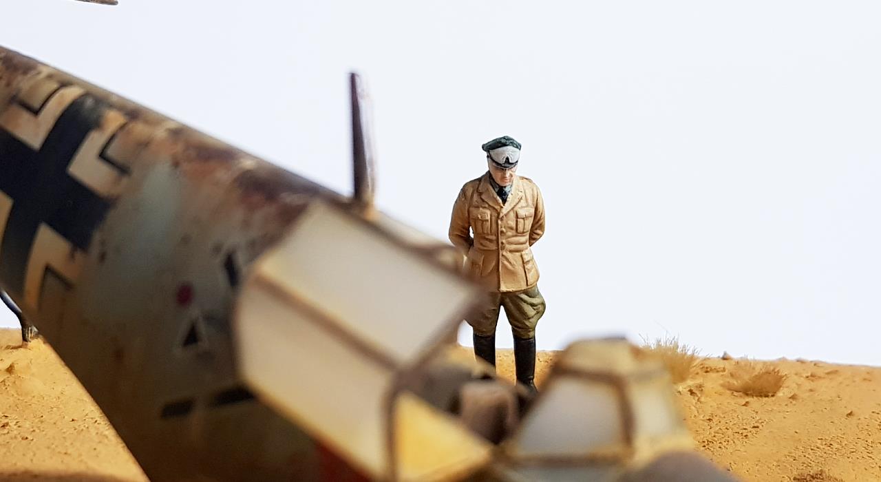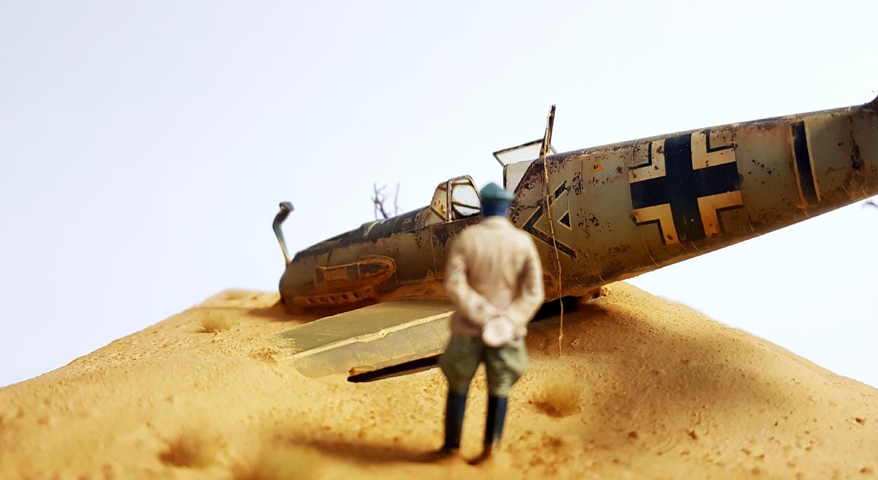 사막에 추락 한 비행기를 지긋이 바라보며 생각에 잠겨 있는 롬멜 장군을 표현 해 보았습니다.