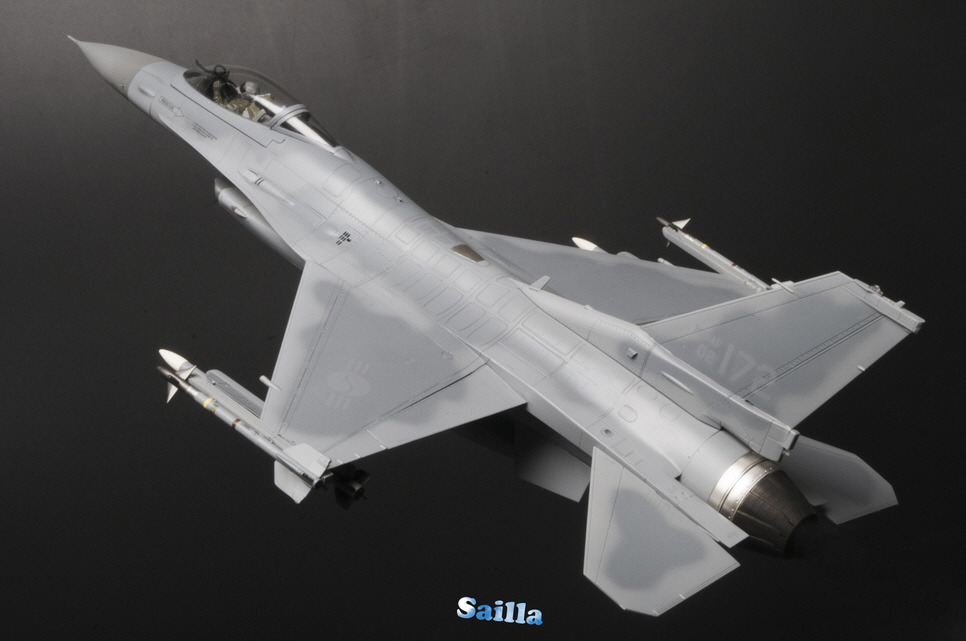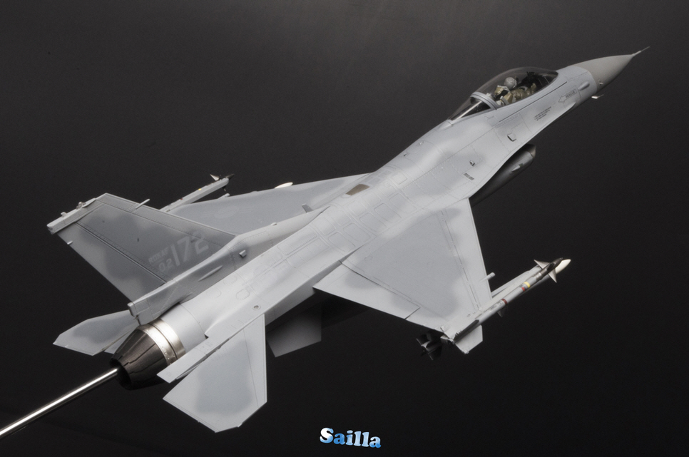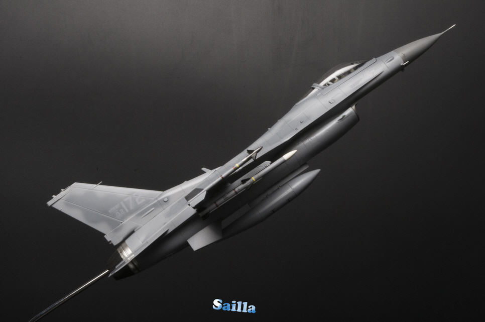 타미야 1/48 F-16 제품을 기반으로 제작하였으며 의뢰인의 요청에 따른 컬러링과 무장을 적용하였습니다.