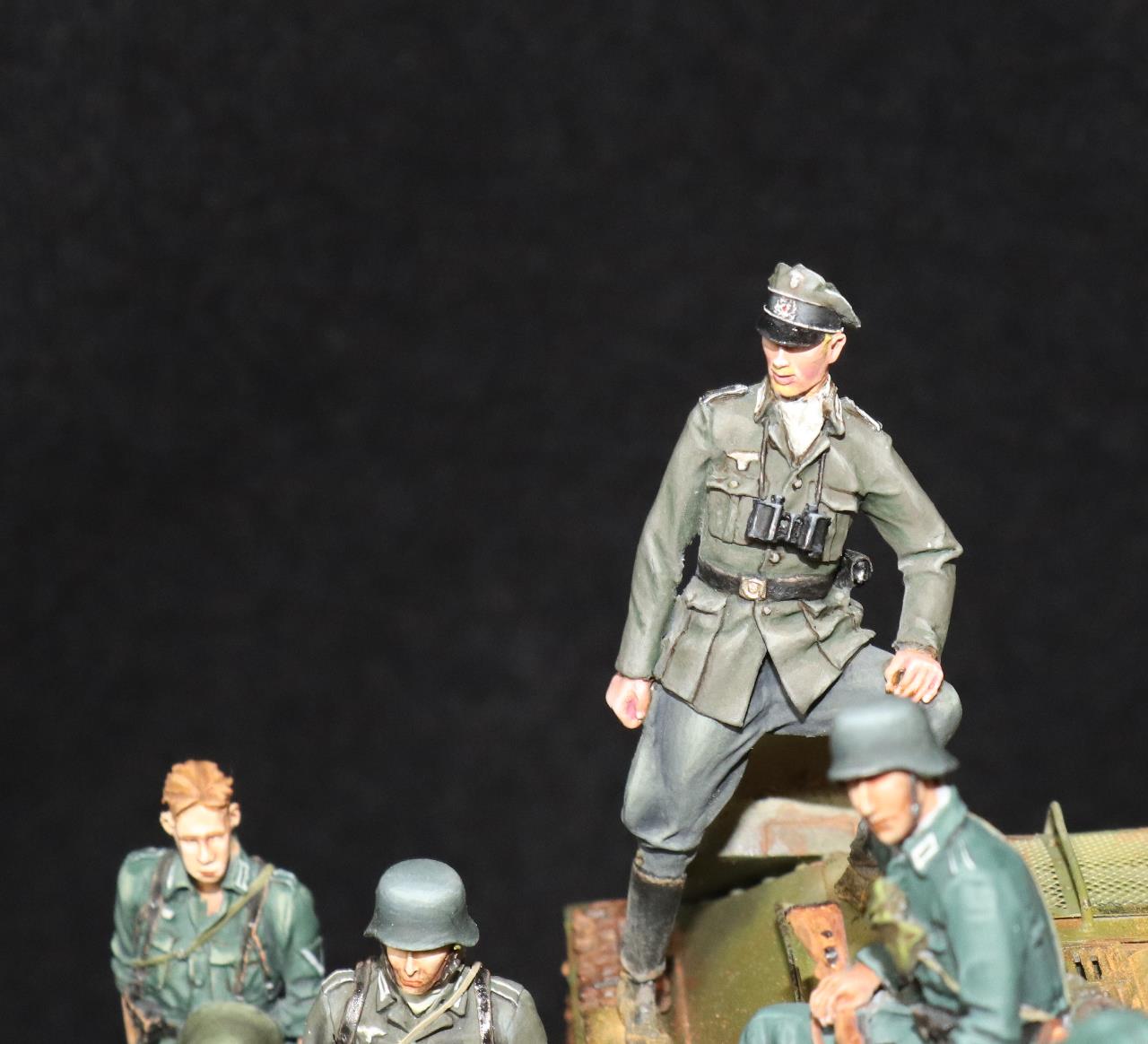 각 인물들을 세부적으로 묘사하고 변화를 위해 헤드 부분을 일부 교체해 주었고, 군장품 류의 디테일에도 주의를 기울여 작업했습니다. 각자의 군복의 색에 변화를 주어 각각 다른 느낌이 들도록 작업해 봤습니다.
