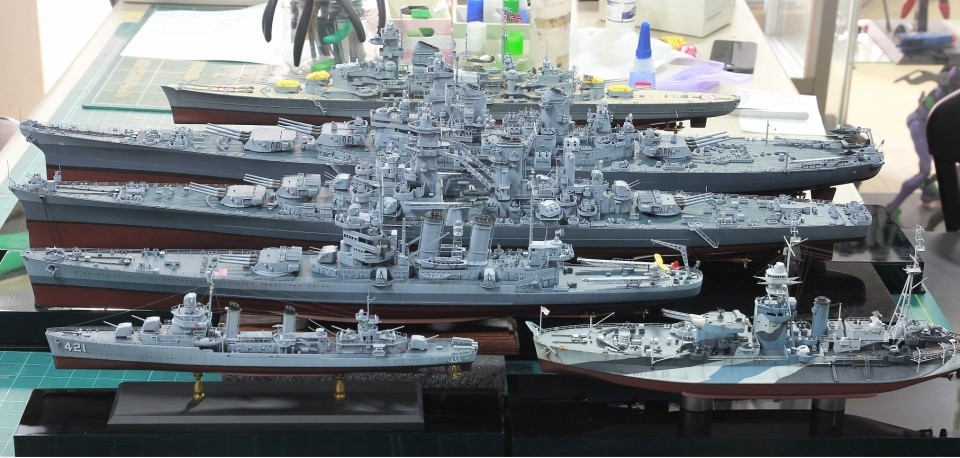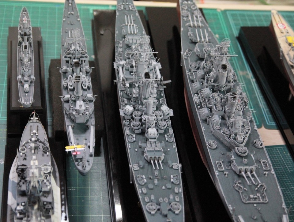 뒤로부터 독일 중순양함 블뤼허, 미국전함 미주리, 미국대형순양함 알라스카, 미국 버거급 포켓전함, 벤슨구축함, 영국 모니터함.