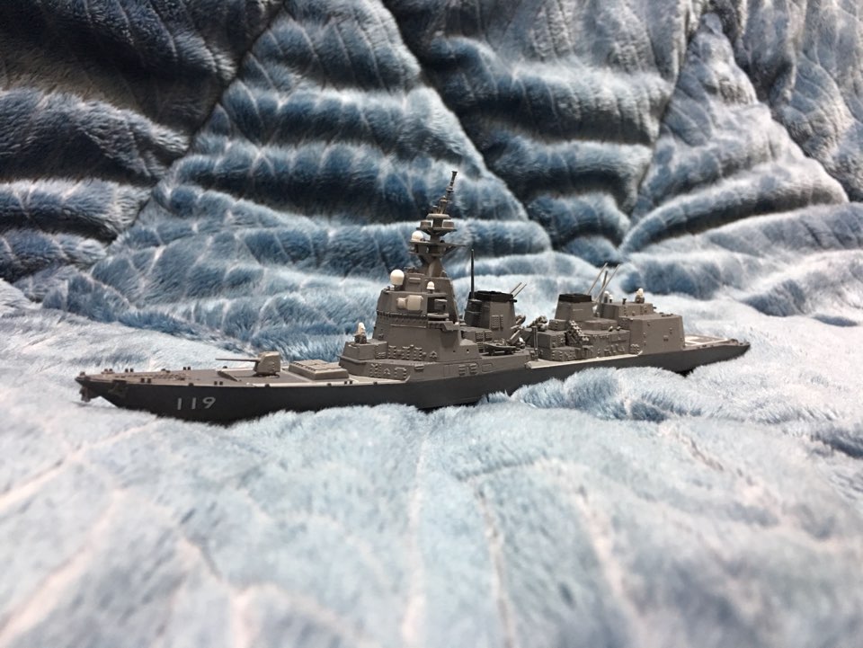 최근에 찍히는 해상자위대 함정 사진들이 전반적으로 어두운 느낌에 진한 색상으로 많이 공개되어서 도색도 거기에 맞추려고 해 봤습니다.