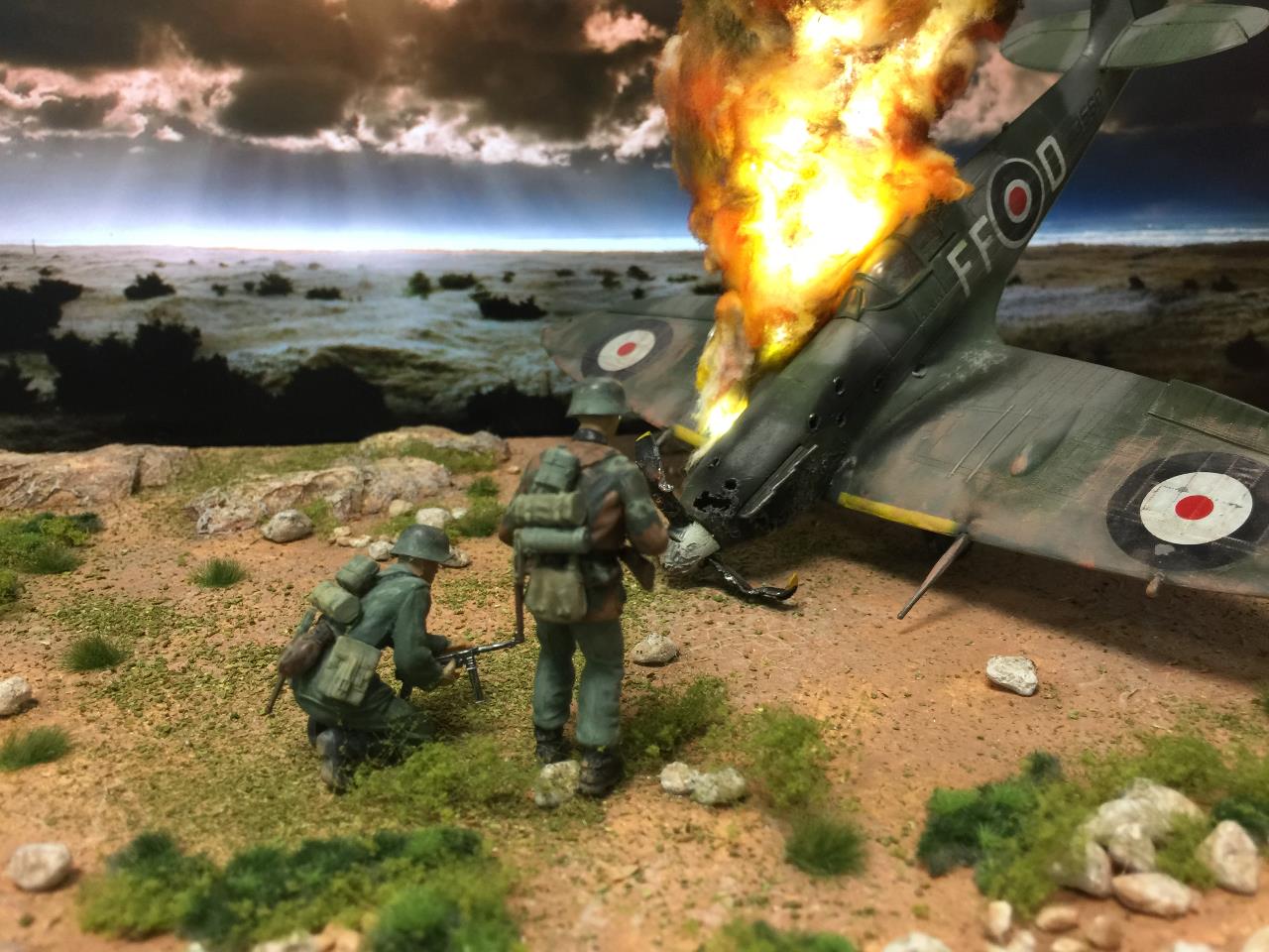 안녕하세요? 매번 비슷한 패턴이지만, 이번에는 독일군20밀리 대공기관포에 의해 피격된 영국공군 스피트파이어전투기가 불타는 모습을 표현해 봤습니다. 재밌게 봐주시면 고맙겠습니다~^^