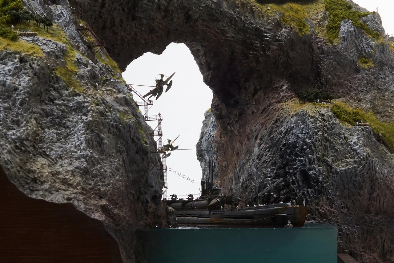 저런 지형에 잠수함이 정박해 있기는 사실상 불가하나 모형적인 부분으로 연출된 부분임이라 이해해주시면 감사하겠습니다.