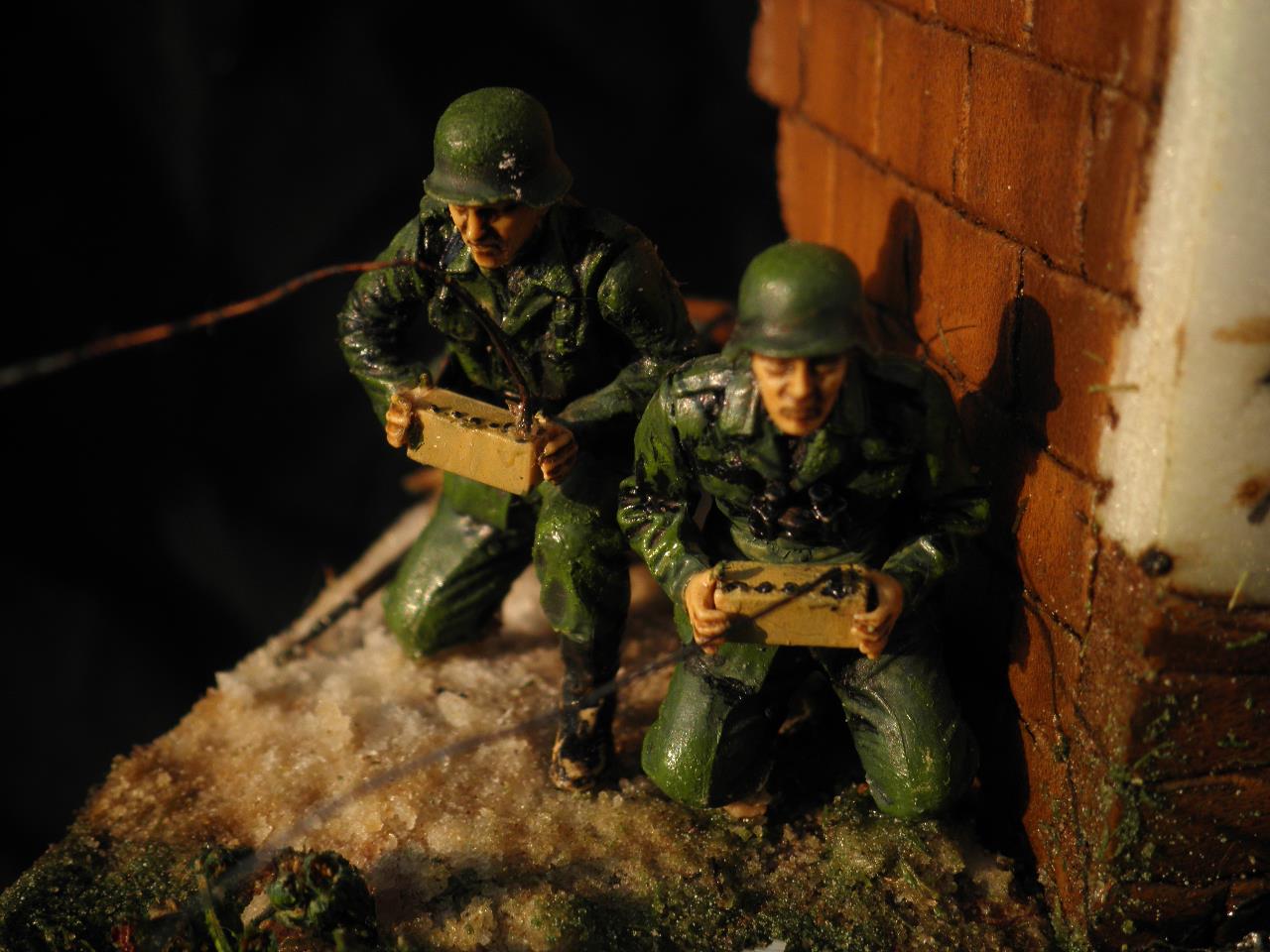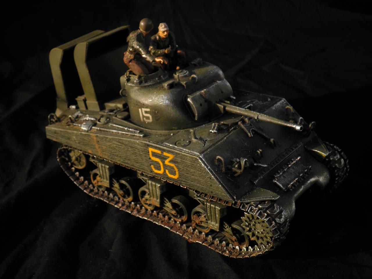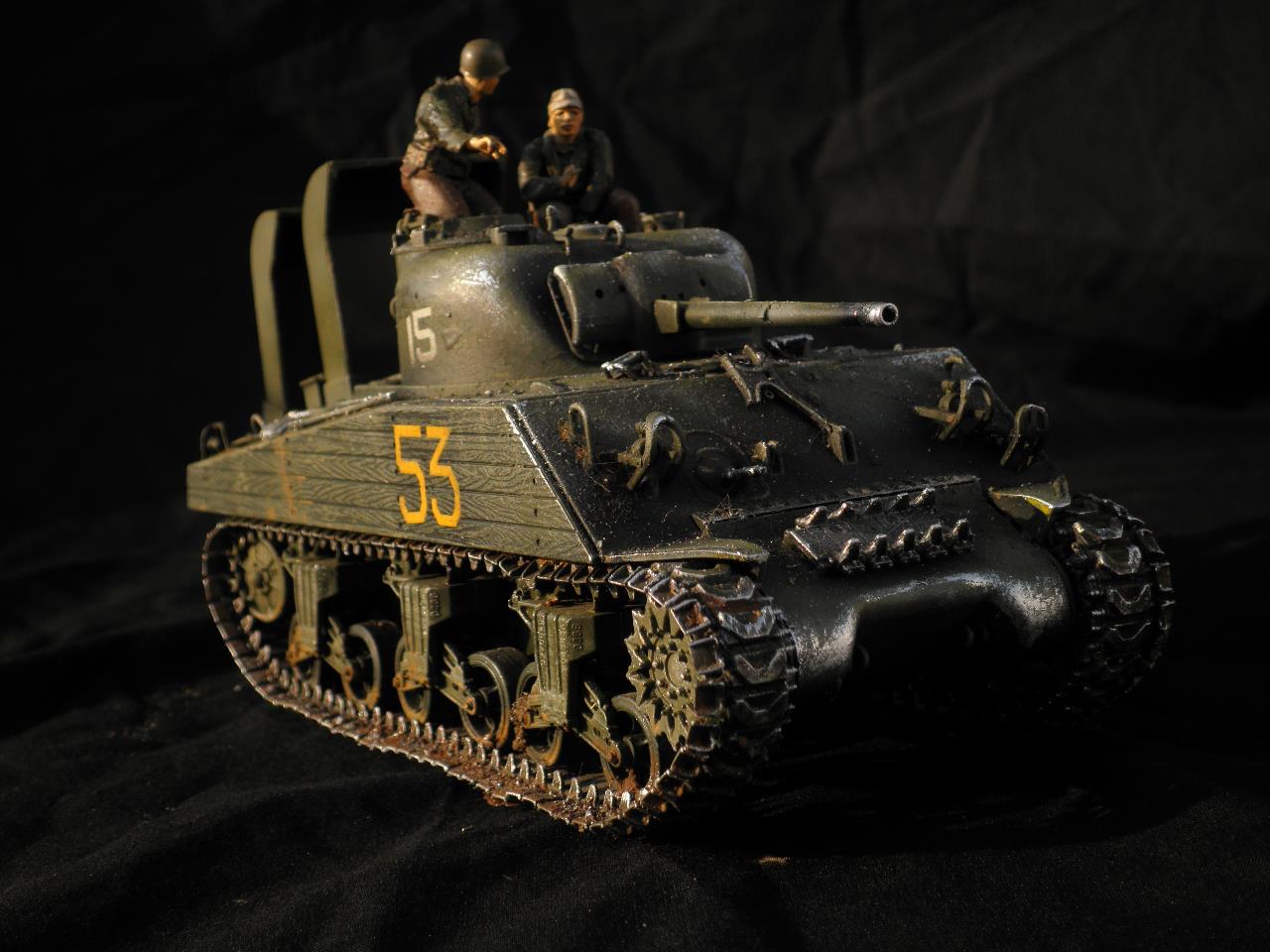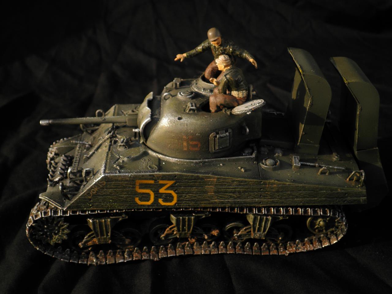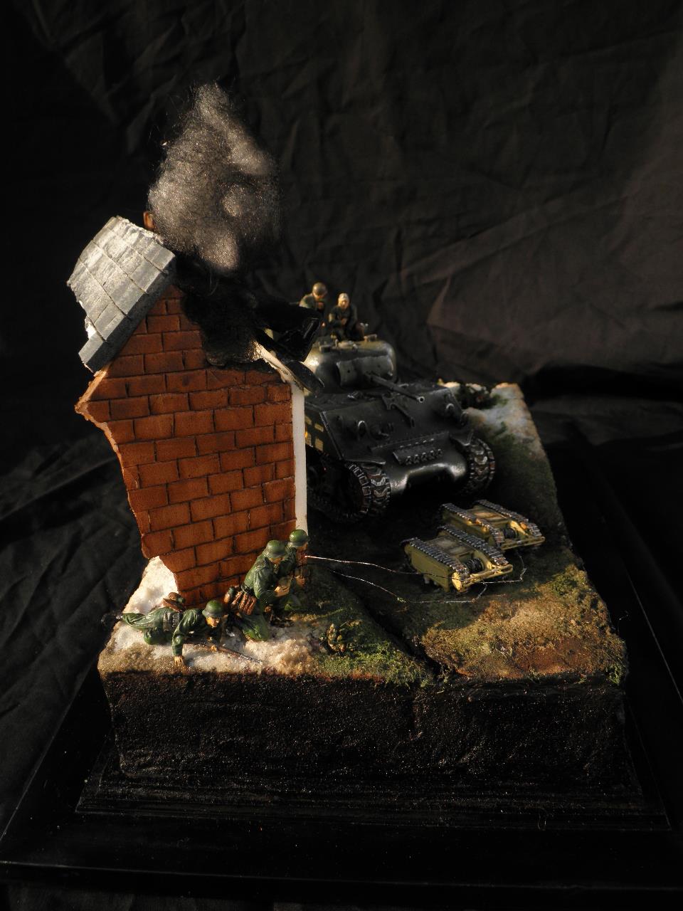 도색은 별거없이 올블랙도색뒤 점점더 밝아지게 에어브러쉬하였습니다.모듈레이션이라기보단 제생각대로 전차의 밝고 어두움을 나타냈습니다.건물은 우드락 자작입니다.새로이 작업한게아닌 이리저리 만들었던것을 짬뽕시켜 퓨전하였습니다.팁 모듈레이션은 카키색 에어브러슁한뒤 흰색을 더섞어 에어브러슁을 해주고 더많은 흰색을 섞어 에어브러쉬해준다 이작업을 계속하면 입체감이나나 자칫 하얗게 될수있다