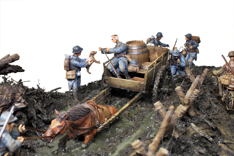 전체적으로 머랄까요..좀 정신이 없고 순화되지 않은 1차대전의 진흙탕을 표현해보고 싶었는데 뭔가 많이 아쉽습니다. 실제 사진을 보면..이런곳에서 인간이 생활이 가능할까 싶을 정도로 열악하죠...