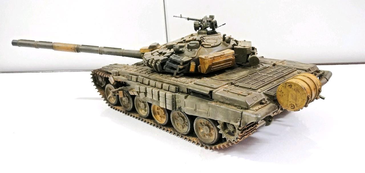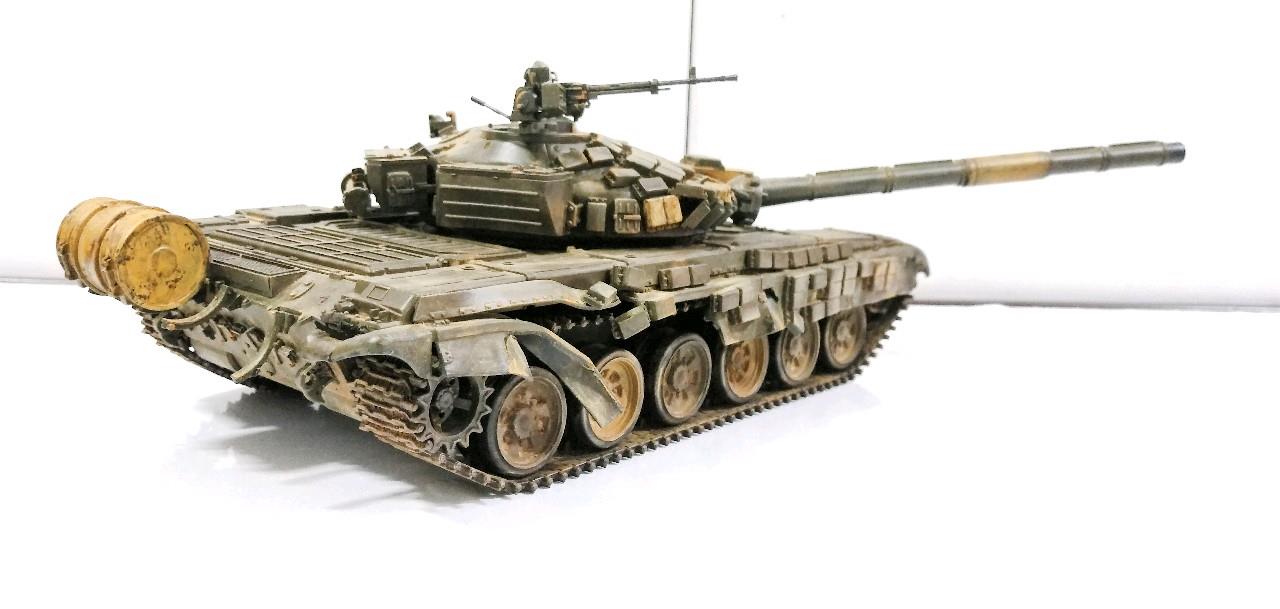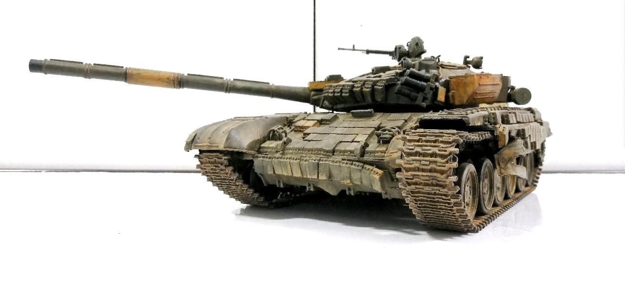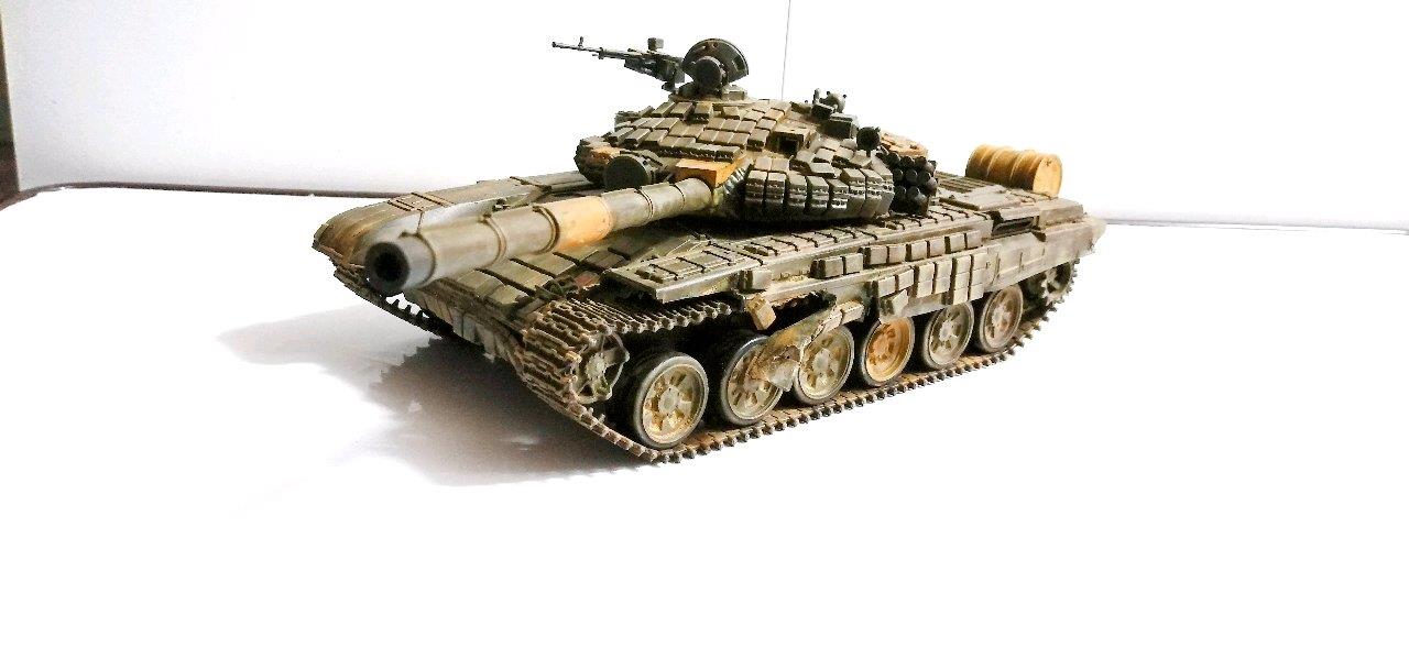 뭐 거의 정크킷 수준으로 요즘은 거의 취급하지 않는 오랫동안 묵혀있던 즈베즈다의 t-72를 어떻게 만들어 볼까 고민하다가 갈기갈기 찢겨서 굴러다니던 시리아군의 t-72로 컨셉을 잡고, 여러 사진을 참고해 본 후 이런 전차도 있겠구나 라는 생각으로 고증에 얼매이지 않고 손 가는대로 작업해 봤습니다.