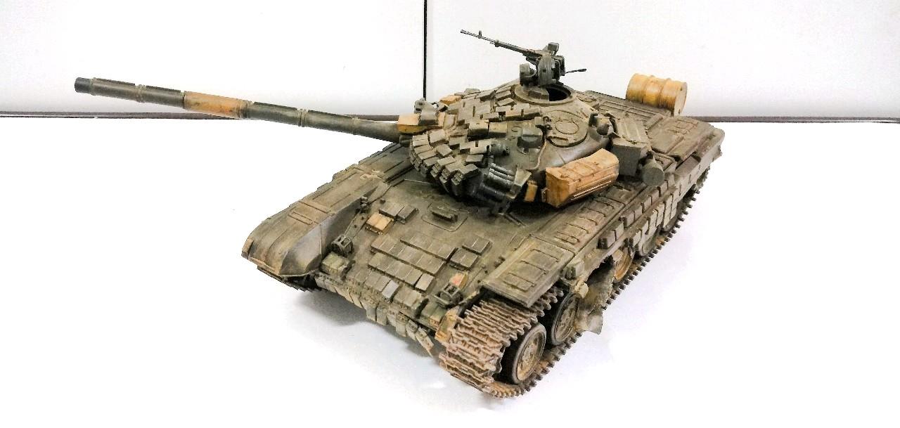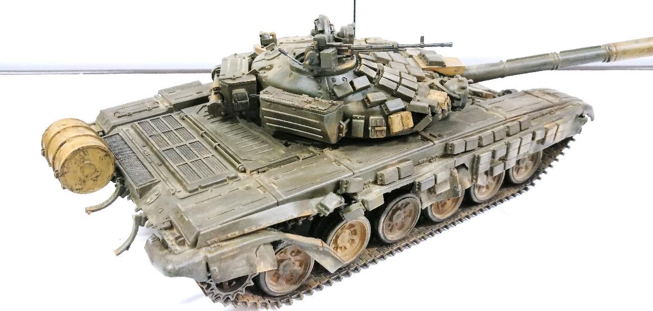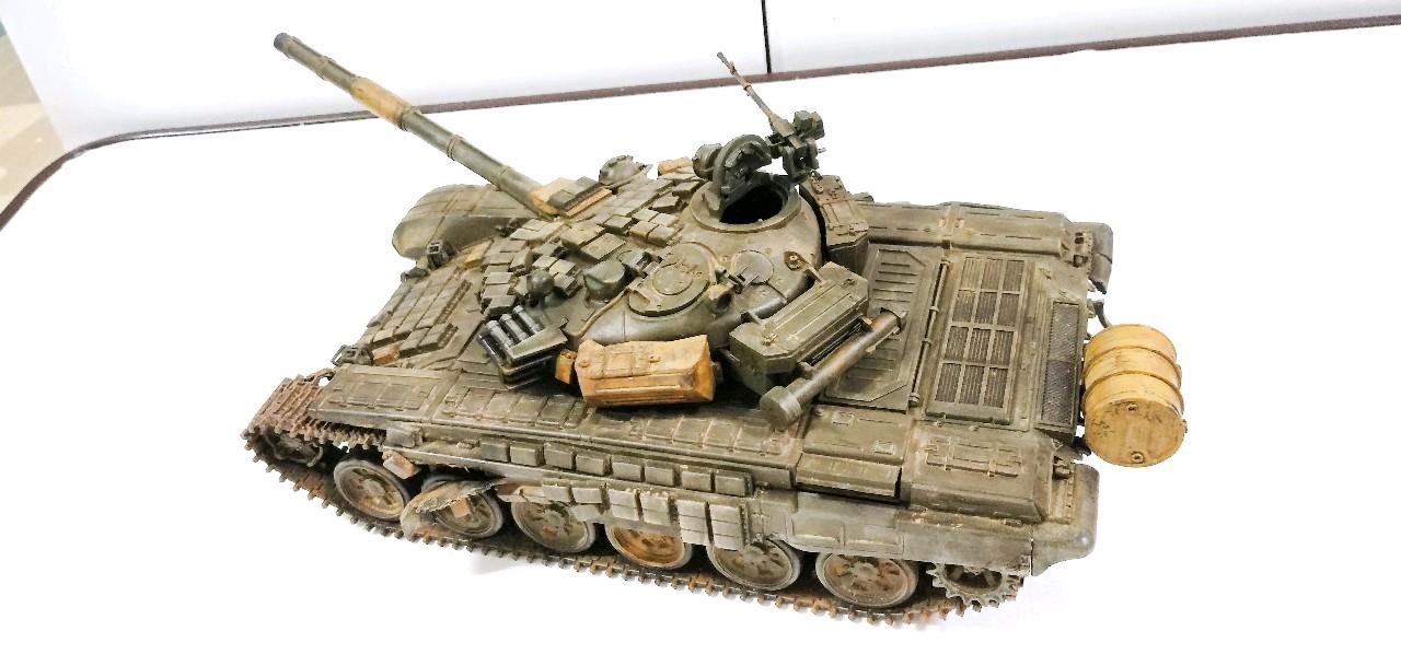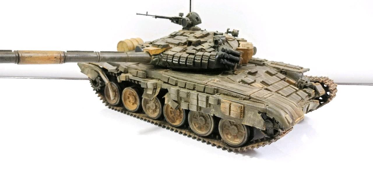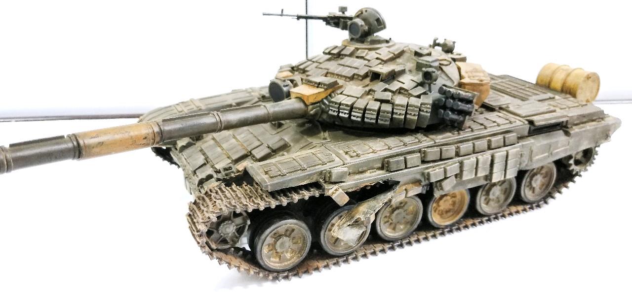 뭐 거의 정크킷 수준으로 요즘은 거의 취급하지 않는 오랫동안 묵혀있던 즈베즈다의 t-72를 어떻게 만들어 볼까 고민하다가 갈기갈기 찢겨서 굴러다니던 시리아군의 t-72로 컨셉을 잡고, 여러 사진을 참고해 본 후 이런 전차도 있겠구나 라는 생각으로 고증에 얼매이지 않고 손 가는대로 작업해 봤습니다.