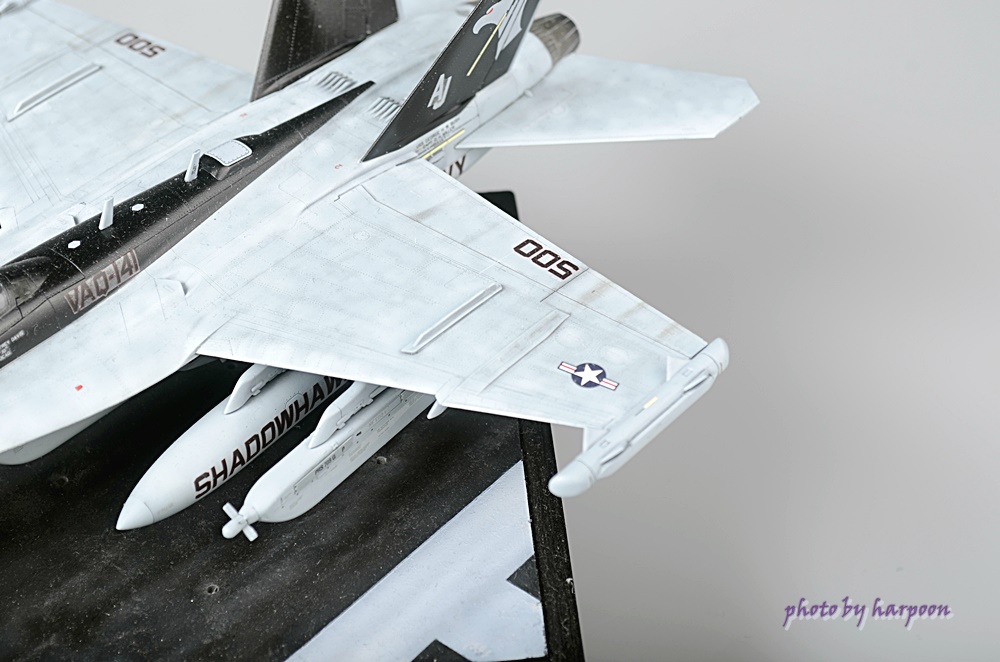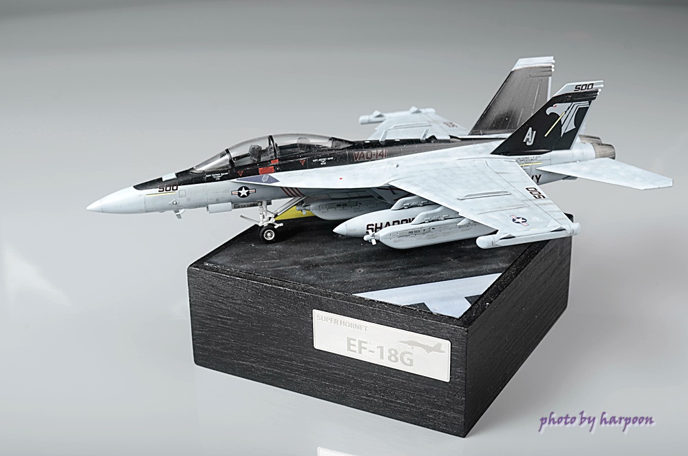 정말 오랜만에 올립니다.킷은 아카데미사의 MCP 1/72 USN E/A-18G 'VAQ-141 Shadow Hawks'입니다. 올봄에 시즈오카 하비쇼에 모형삼합회 부스에 꼽사리로 전시를 다녀 온 녀석입니다. 요즘은 주로 의뢰작업을 많이하고 있어서 아예 비공개로 작업하는킷들이 많아서 작업기나 완성작 사진이 뜸합니다. 간단한 베이스를 추가하는 선에서 마무리를 지었습니다. 또 찾아뵙겠습니다. 감사합니다.