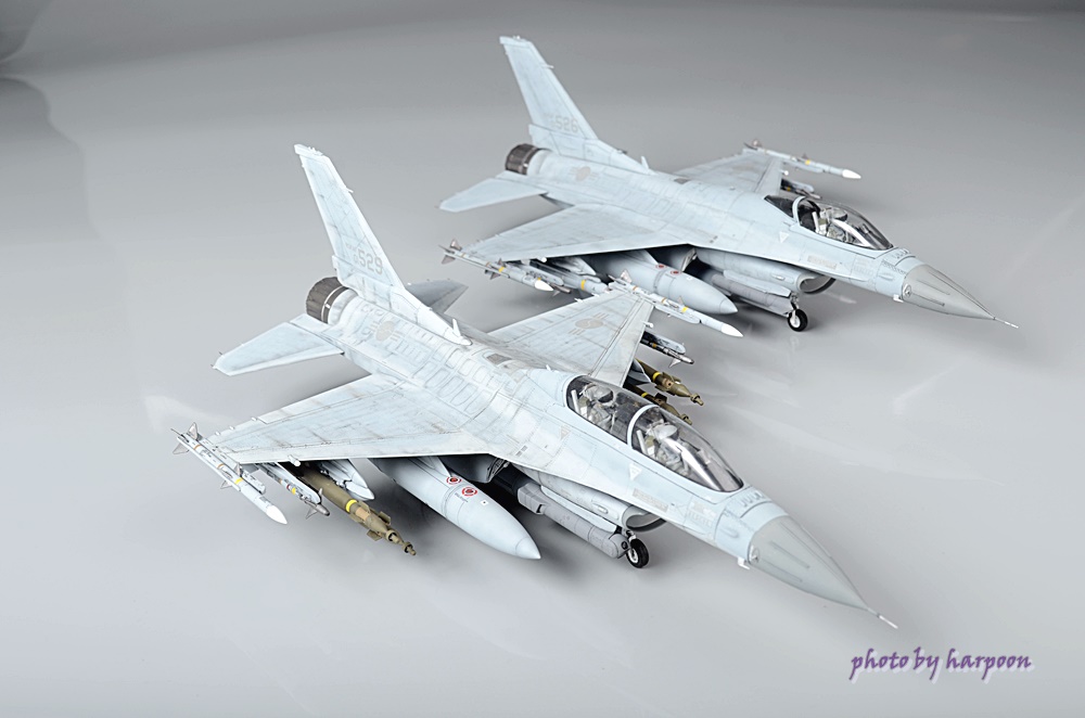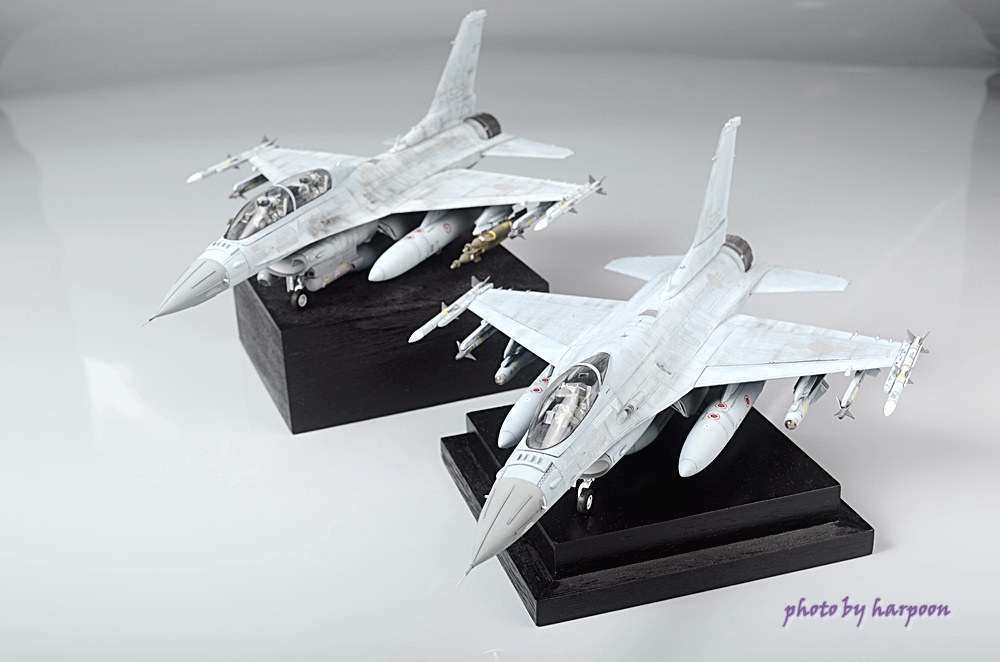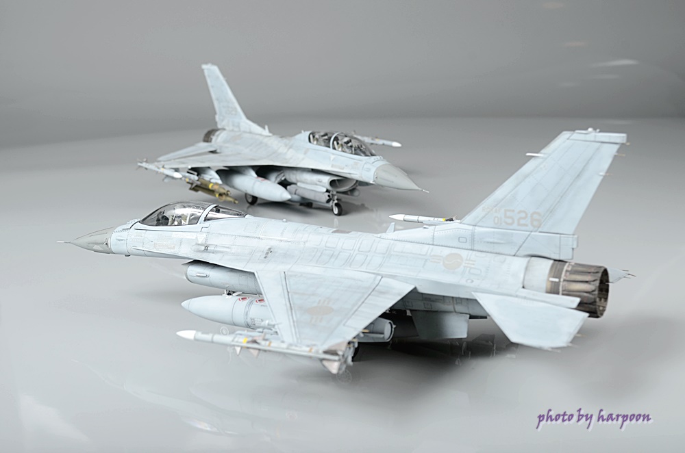 작업하다가 장기간 방치를 했었는데 때마침 의뢰가 들어와서 마무리를 했습니다. 아카데미의 1/48 KF-16D형과 동사의 F-16 A/C형에서 복좌부분만 떼어서 D형을 C형으로 개조를 했습니다. D형을 주말에 전시회를 갔다가 경북 경주로 C형은 경기 의왕의 의뢰인의 진열장으로 가네요. 봐주셔서 감사합니다.