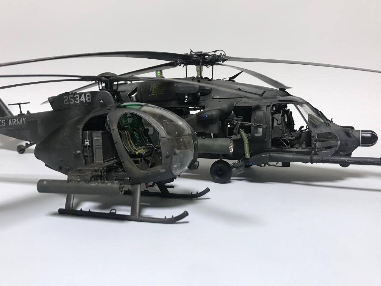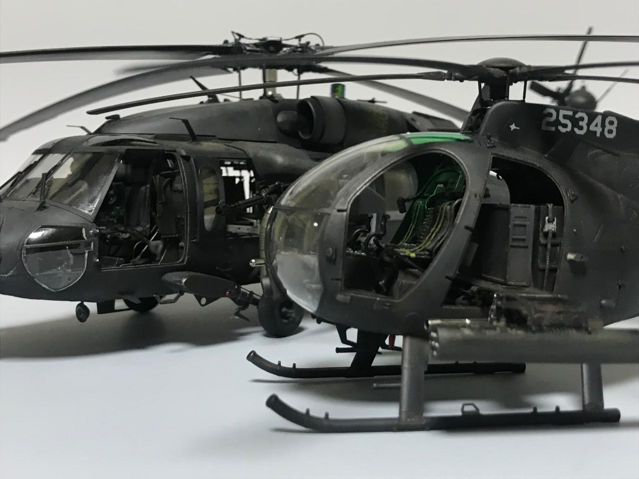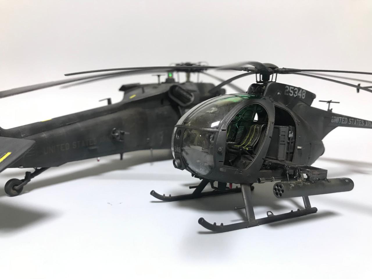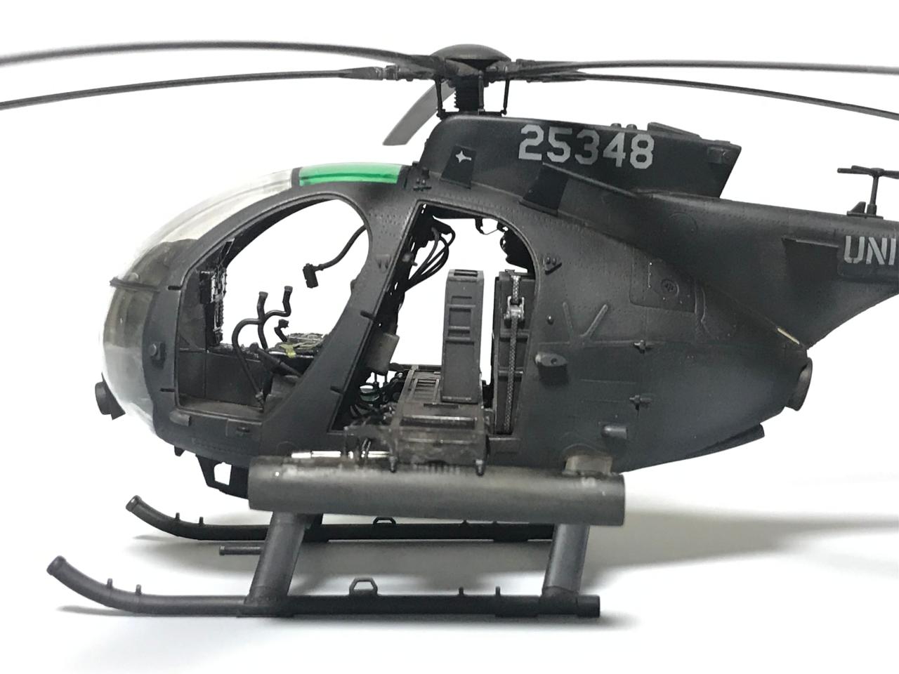 Kittyhawk사의 리틀버드입니다. 기체가 작아 작업 시간은 그리 오래 걸리진 않았습니다. 처음 박스 열어보고 부품도 적고 기체도 작아 좀 당황했으나 완성하고 나니 이쁘고 멋지네요~~작례가 많은 이유를 알겠네요.. 기체가 워낙 작아 디테일업은 기체 내부, 외부 쪽 배선작업을 진행하였고, 메인로터는 블랙호크와 마찬가지로 베어링을 이용하였습니다. 이것도 역시 탈부착식으로 진행했고요. 테일로터쪽은 부품이 워낙 작아 황동봉을 삽입해 탈부착식으로 작업했습니다. 이전에 완성한 블랙호크와도 함께 사진 촬영 했으니 즐겁게 감상 부탁 드립니다.