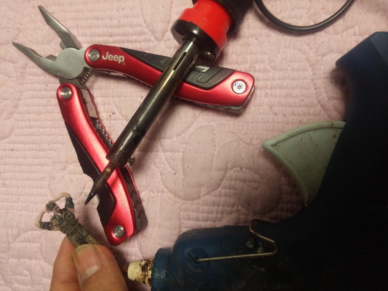 그다음 망가진 인두로 모양을 만듭니다.절대 새것의 인두로 하면 안됩니다.인두팁이 상해 납땜질이 안됩니다 인두팁이 상한 인두로 해야 됩니다.