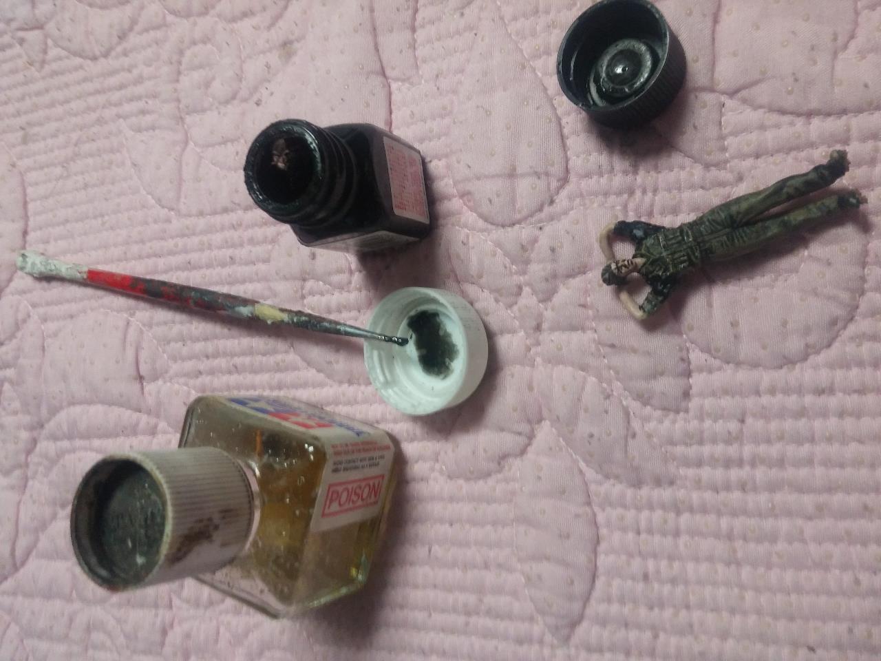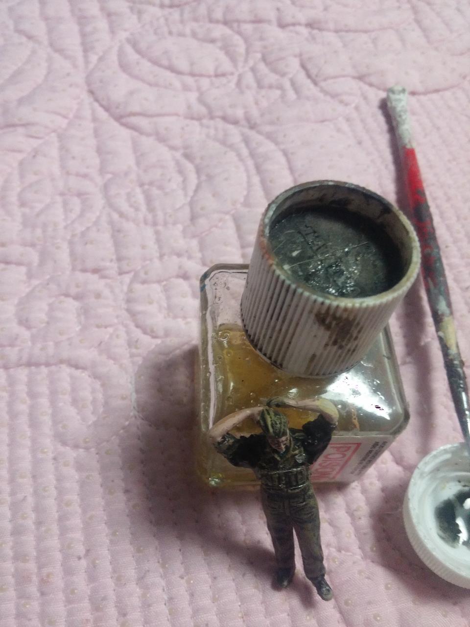 검은색 도료와 프라스틱 본드를 섞어줍니다.