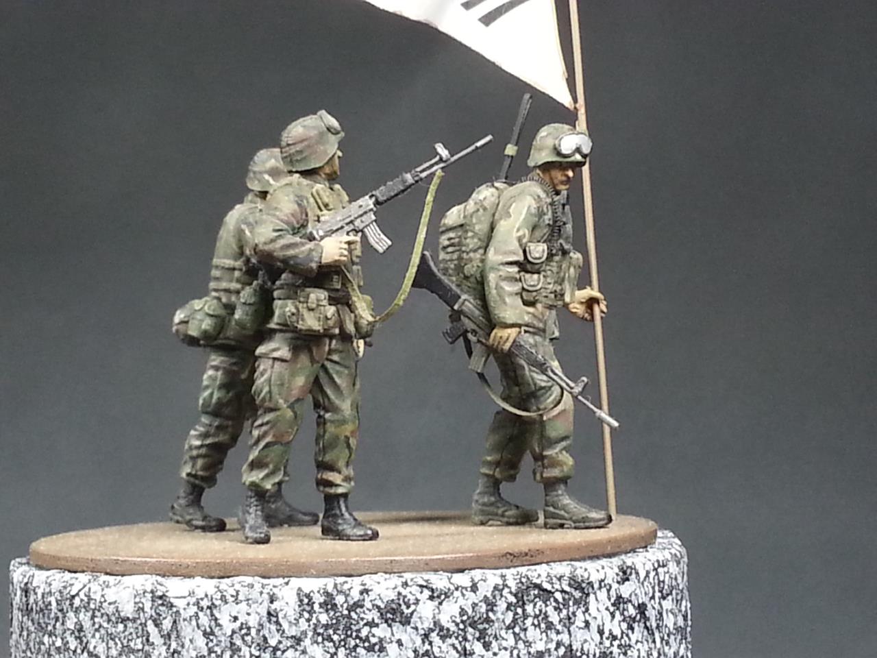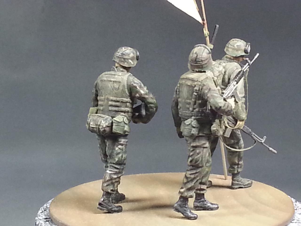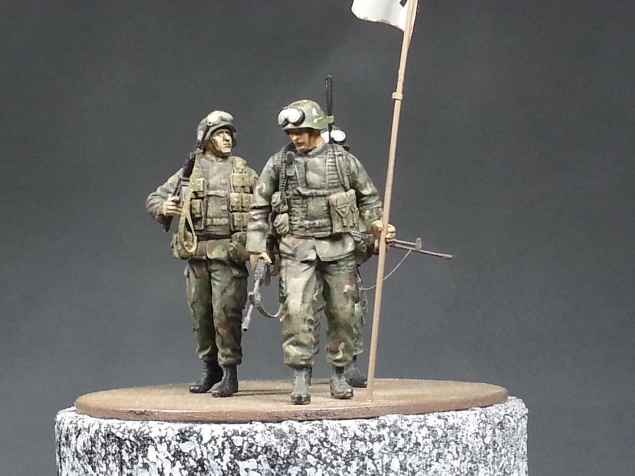 예전에 만들었지만 페기되는 인형들을 한국군 도색을하고 굴러다니는 아카데미 전차병킷에 들어 있는 K1소총을 K2소총으로 개조하였으며, 아카데미 상륙장갑차 잉여 부품에 태국기를 달아 완성 하였읍니다.