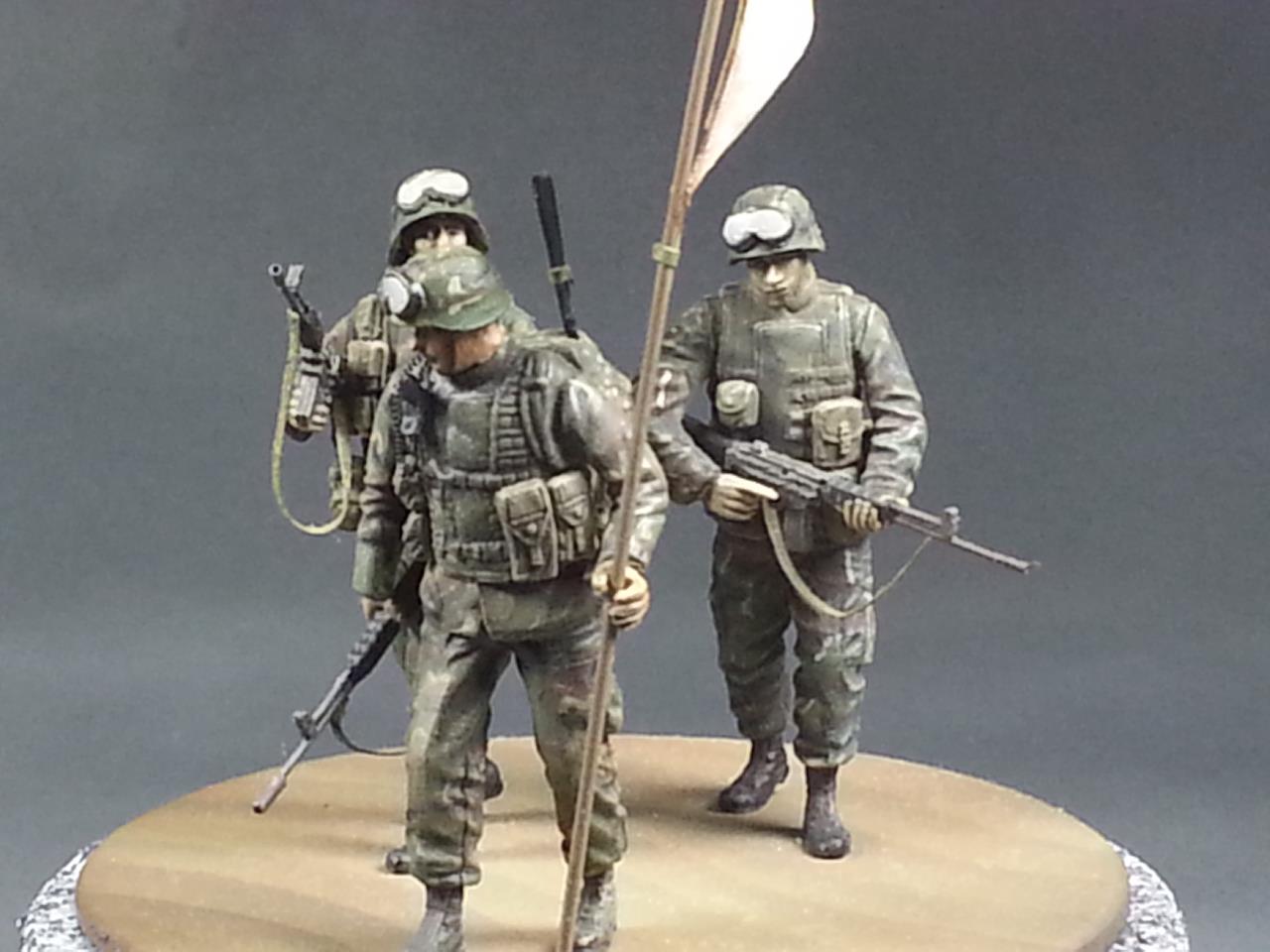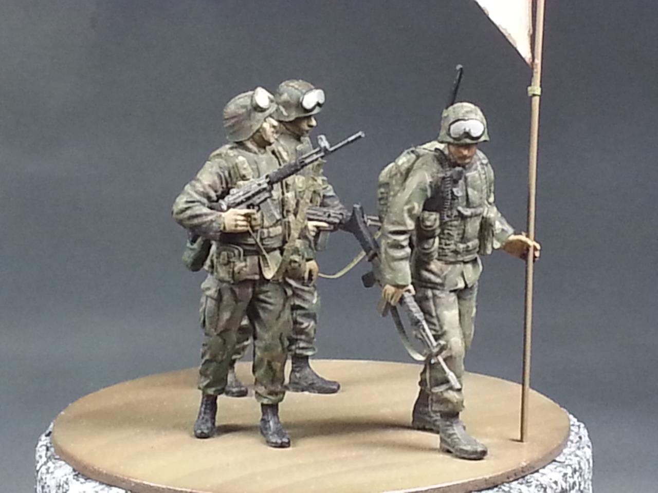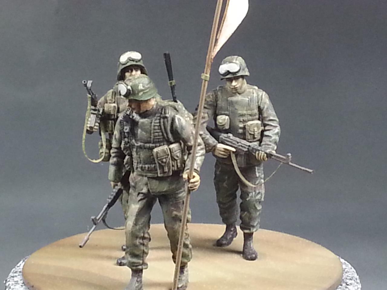 예전에 만들었지만 페기되는 인형들을 한국군 도색을하고 굴러다니는 아카데미 전차병킷에 들어 있는 K1소총을 K2소총으로 개조하였으며, 아카데미 상륙장갑차 잉여 부품에 태국기를 달아 완성 하였읍니다.