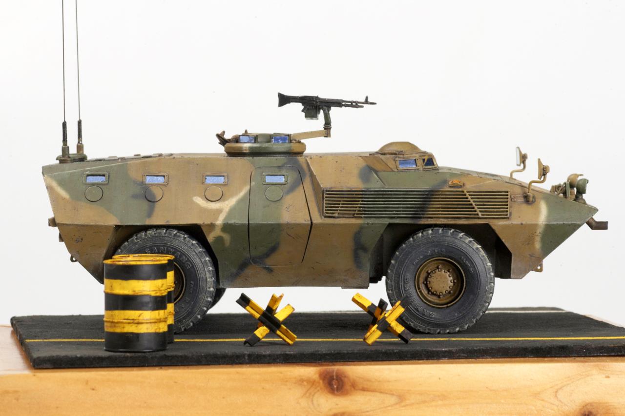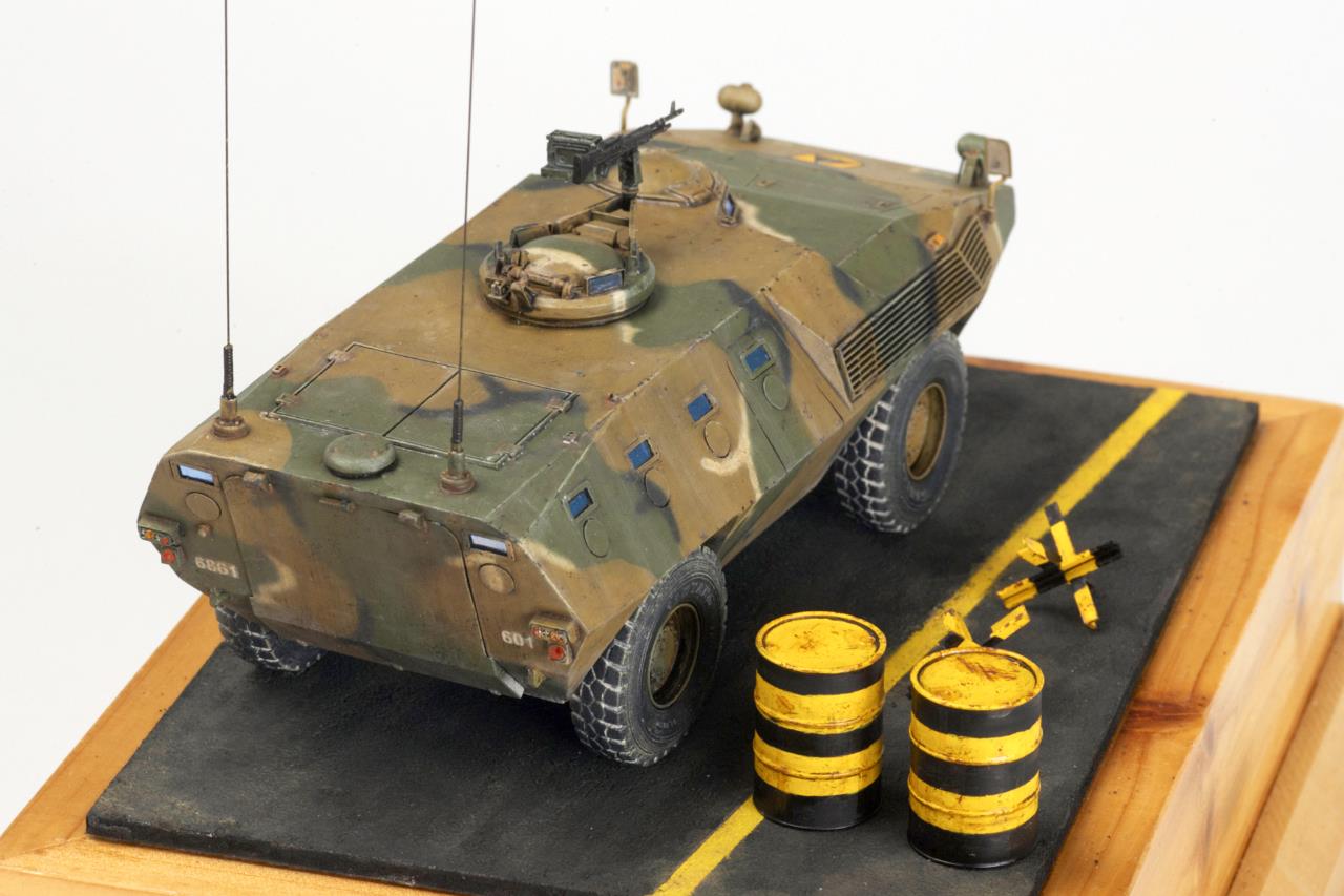 안녕하세요. 데프모델의 레진제품 KM900 입니다. 예전 서울시내에서도 심심찮게 볼 수 있었던 장갑차량이지요. 이테리 피아트사의 차량을 기아에서 라이센스 생산했던 것으로 알고 있습니다. 도색은 IPP 한국 특색으로 했고 지면은 AK 아스팔트 표현제를 사용했습니다. 마킹은 고증을 전혀 무시하고 붙였으므로 별 의미는 없습니다. 레진 제품이 처음이라 조립시 실수를 많이 했는데 자세히 보면 티가 납니다. ㅎㅎ 양해 바랍니다. ^^