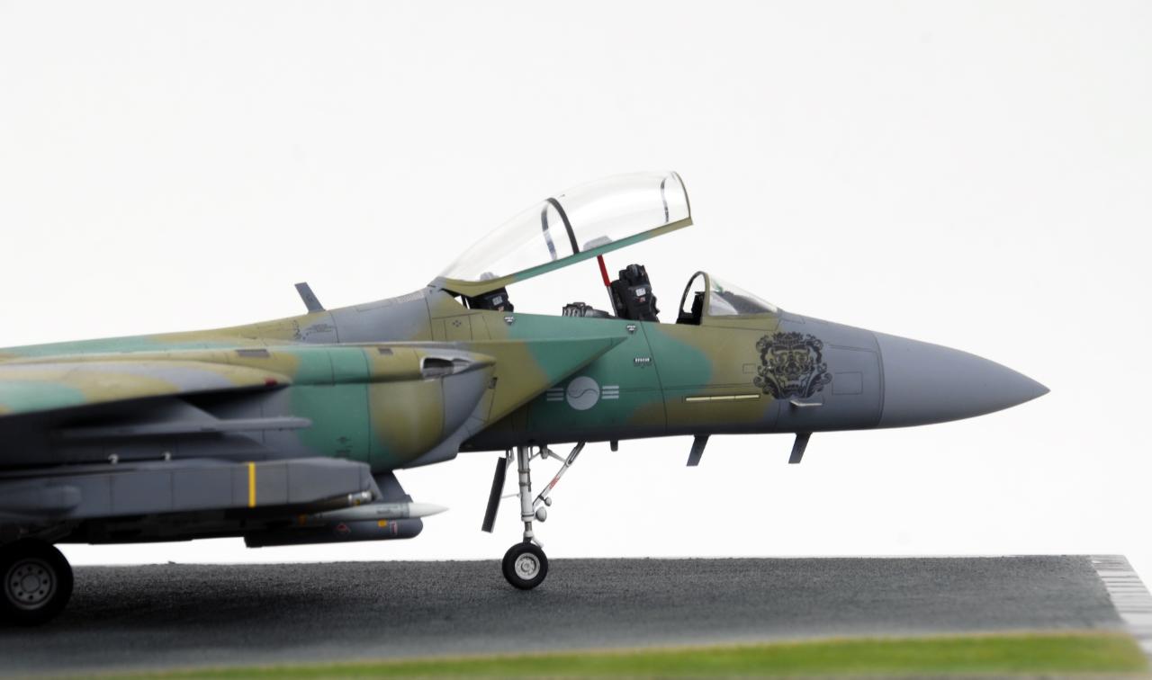The World In Crisis라는 미그사의 서적에 게재되었던 대한민국 공군 F-15K 입니다. 책의 내용도 그렇지만 실제 존재하지 않는 가상의 기체이기에 공군에서 사용하던 그레이 3색 위장을 사용했습니다. 이 작업에서는 아카데미 제품 외에는 쓰지 말자는 컨셉이었기에 노즈아트 데칼과 타우러스만이 타사 제품이 되겠네요.