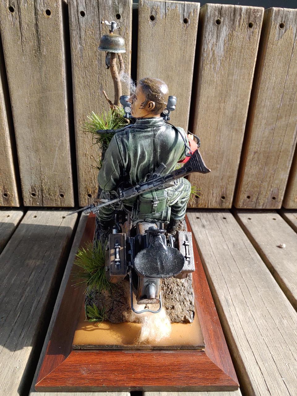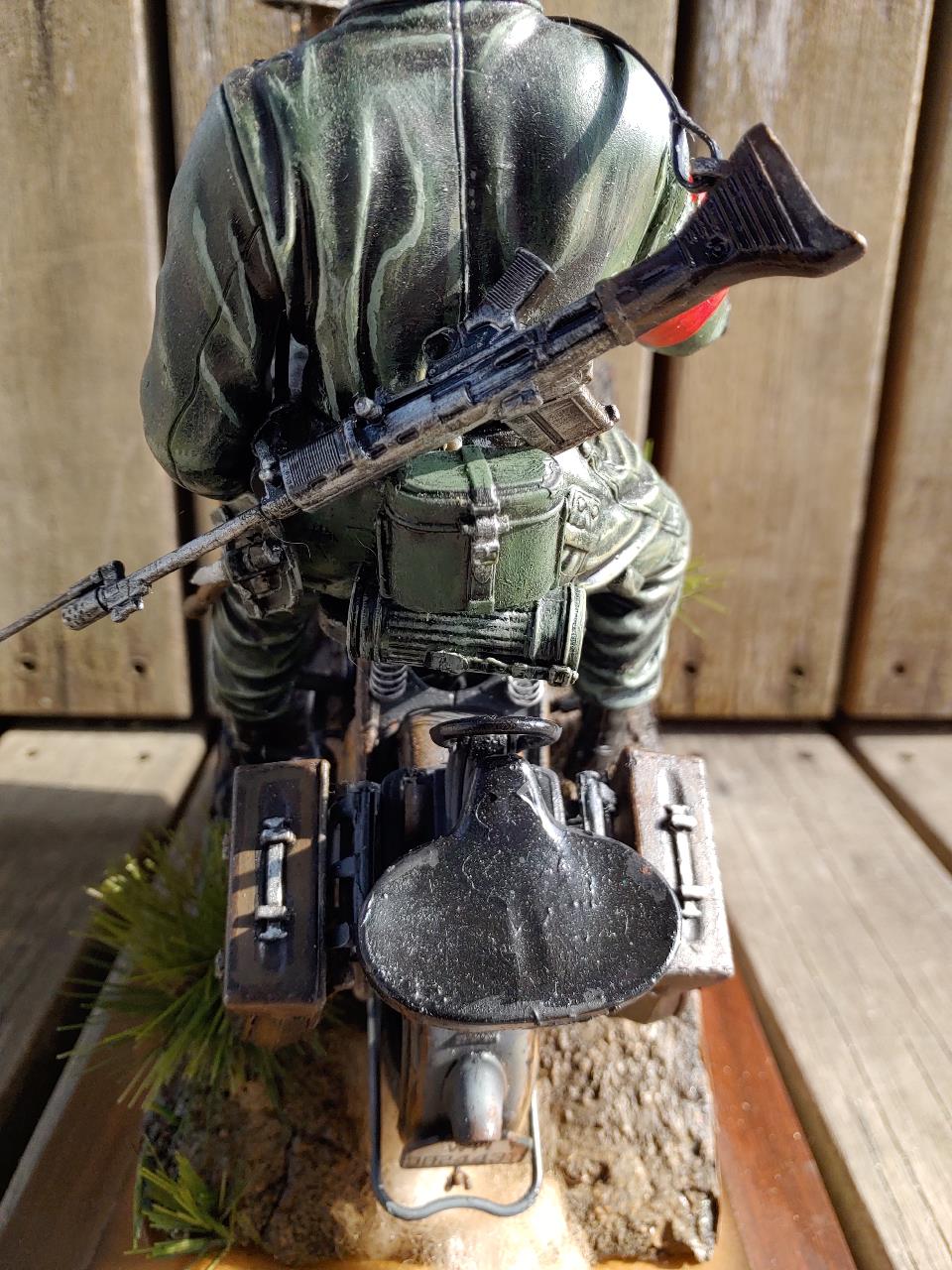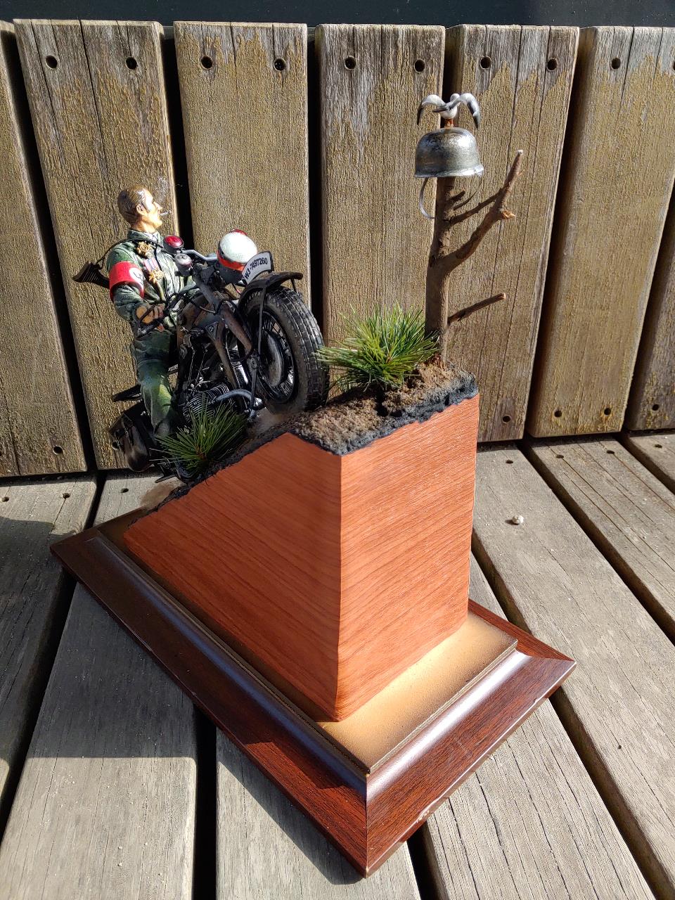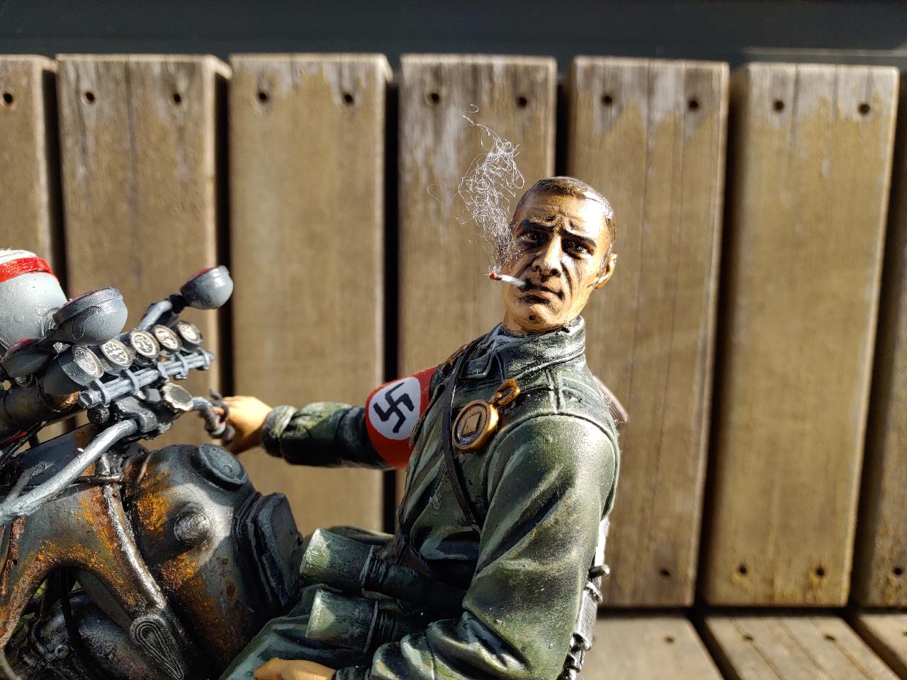 담배는 런너를 불로 가열하여 살짝 식은상태에서 늘려서 만들었고 연기는 솜입니다.오토바이 연기도 솜을 이용하여 레드브라운으로 살짝 에어브러슁 해주었습니다.불이들어오게 led 손전등을 개조하여 삽입하였고