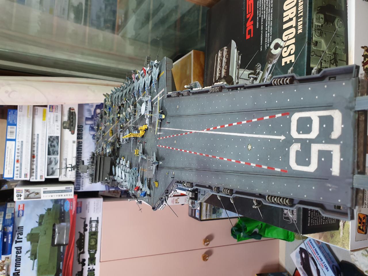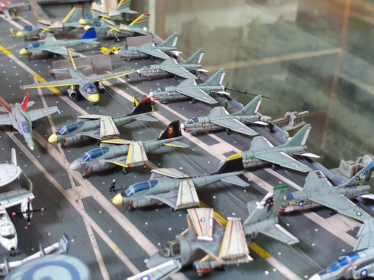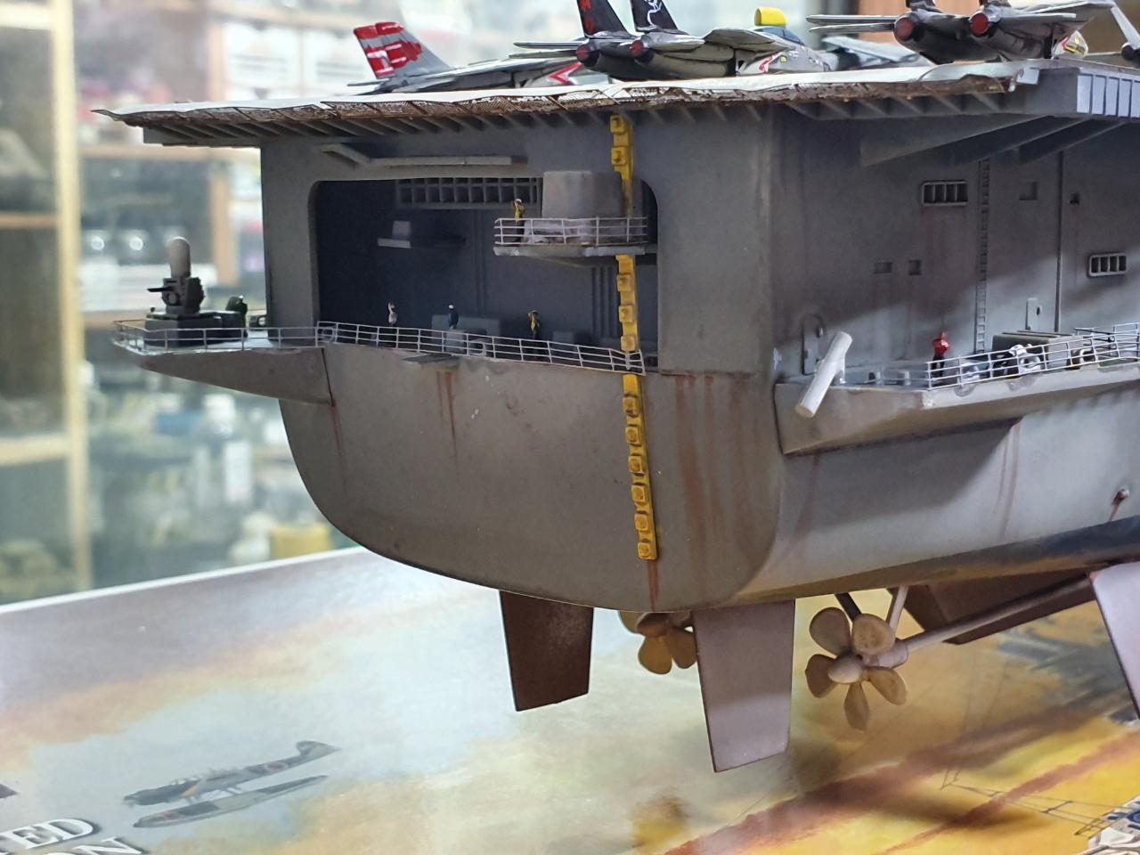 나름대로 완성이 되었습니다 욕심에는 더 많이 작업하고 싶지만 아직 만들지 못한 함선들이 많아 이정도 까지만 작업하고 완성 작이라 사진 올렸습니다... 미흡한 점이 많지만 그래도 나름대로 열심히 작업하였습니다 가장 신경 쓴 부분은 함재기입니다 구판 타미야야 가 플러스 몰드라 패널라인을 전부 세필로 다시 그려주고 리깅 이라는 것도 처음 해보았습니다!! 리깅실 이 녀석이 쭉쭉 늘어나는 탄성이 있었군요!!