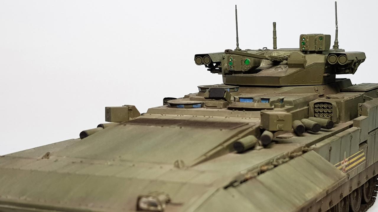 러시아의 차세대 범용 차량 플랫폼 프로젝트 '아르마타' 의 산물로서, T-14 전차의 차대를 이용한 중장갑차(HAPC)입니다. 이스라엘의 나메르 중장갑차와 비슷한 컨셉이라 할 수 있겠습니다. 아마 체첸전의 전훈도 어느정도 반영이 되지 않았나 싶네요.
