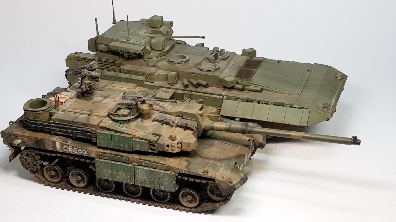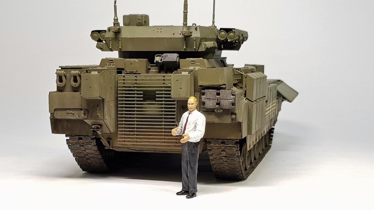 트럼페터 T-90MS에 포함된 1/35 푸틴 인형과의 비교샷.
