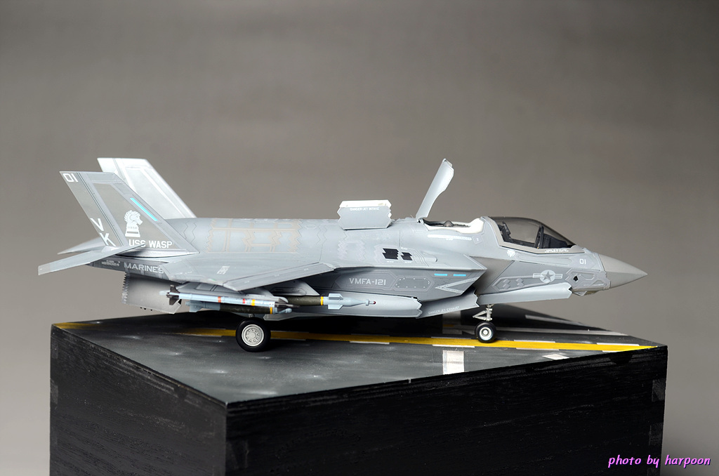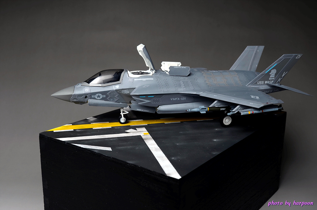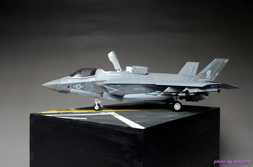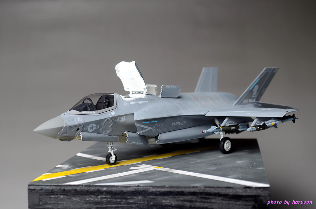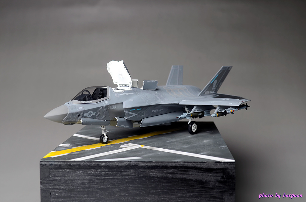 2020년에 첫 작품을 올리네요. 오랜만에 인사드립니다. 아카데미사의 신제품 F-35B입니다. MMZ의 홈지기님께서 리뷰하신 킷을 보내주셔서 작업을 했습니다. 근례에 작업한 킷중에 만족도가 매우 높은 킷입니다. 부품중에 기수부의 안테나 부품이 미성형이라 작업을 못했습니다. 랜딩기어커버나 내부무장창의 커버등이 두가지 형태(open/close)로 들어있어서 도색 작업시 close상태를 재현하는 부품들을 마스크용도로 사용이 가능해서 도색이 매우 편합니다. 퍼티도 거의 사용을 안했네요. ^^; 간단하게 베이스도 만들어서 완성했습니다. 시사출 킷을 오랜만에 받아서 작업을 했는데 만족도가 무척 높아서 기분이 참 좋았습니다. 오랜만에 시사출 킷을 작업할 기회를 주신 홈지기님께 거듭 감사를 드립니다.회원님들 코로나19 항상 조심하시고 즐모하십시오.