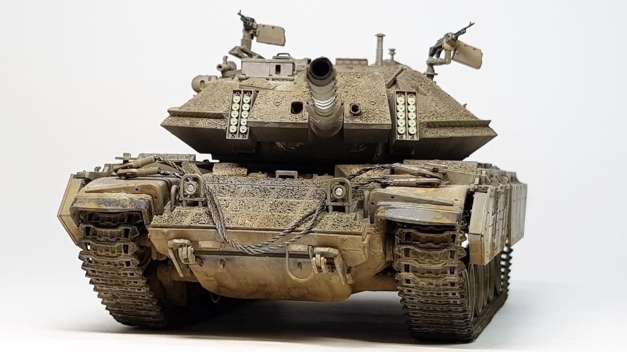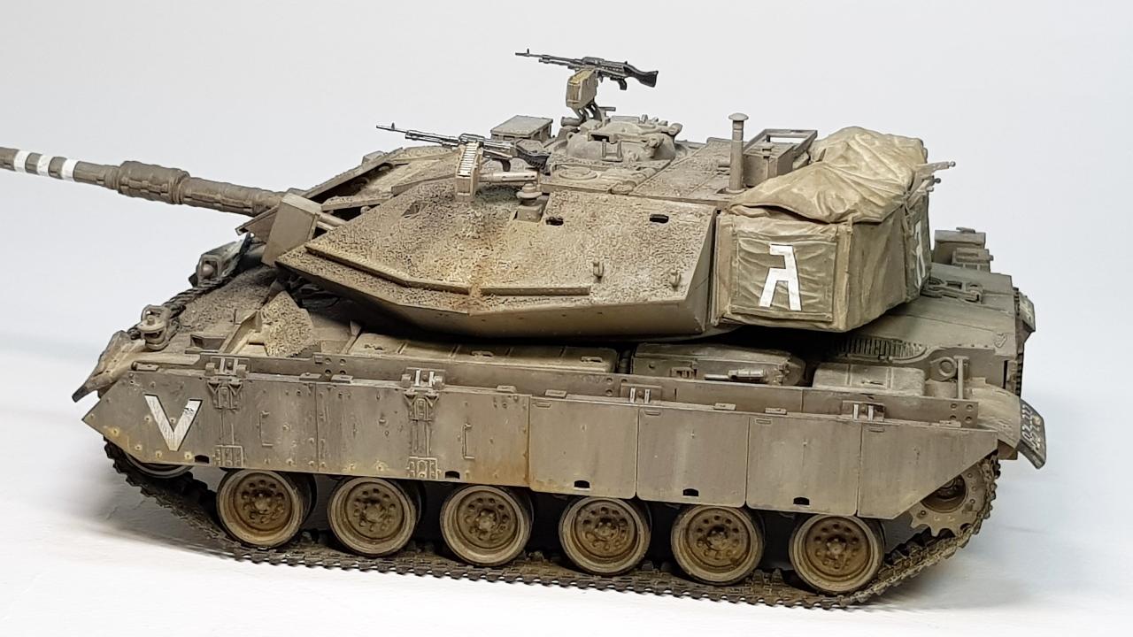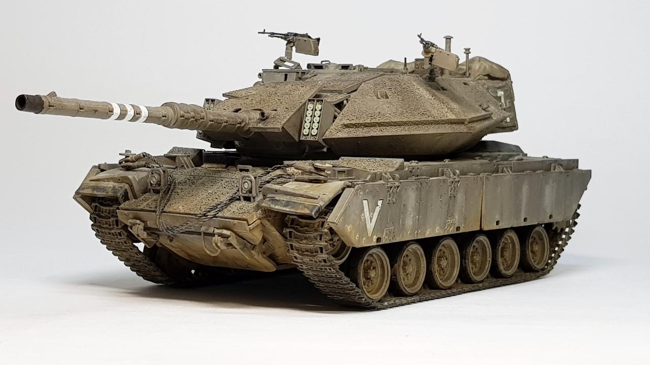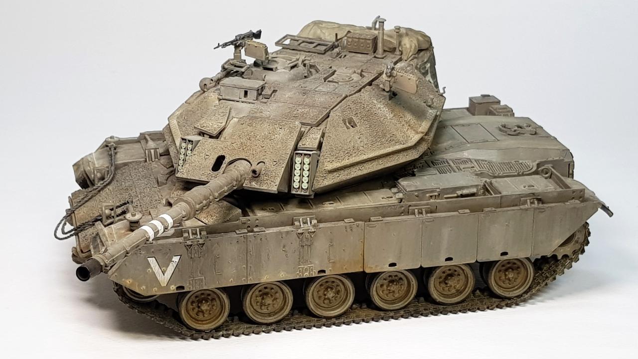 고민하다가, 그냥 제가 맘에 드는 색으로 해석하기로 했습니다. 바로 회색입니다. IDF하면 저는 역전의 용사이면서 동시에 고압적인 그래서 위압감이 있는 이미지로 느껴졌습니다. 그런데에는 무채색의 회색이 더 어울린다고 생각해 회색으로 재현해 보았습니다, 그러나 유화와 웨더링을 이용해 녹색빛이나 사막색 느낌도 약간 내어 그 미묘한 색을 최대한 재현해 보려고 노력했습니다.