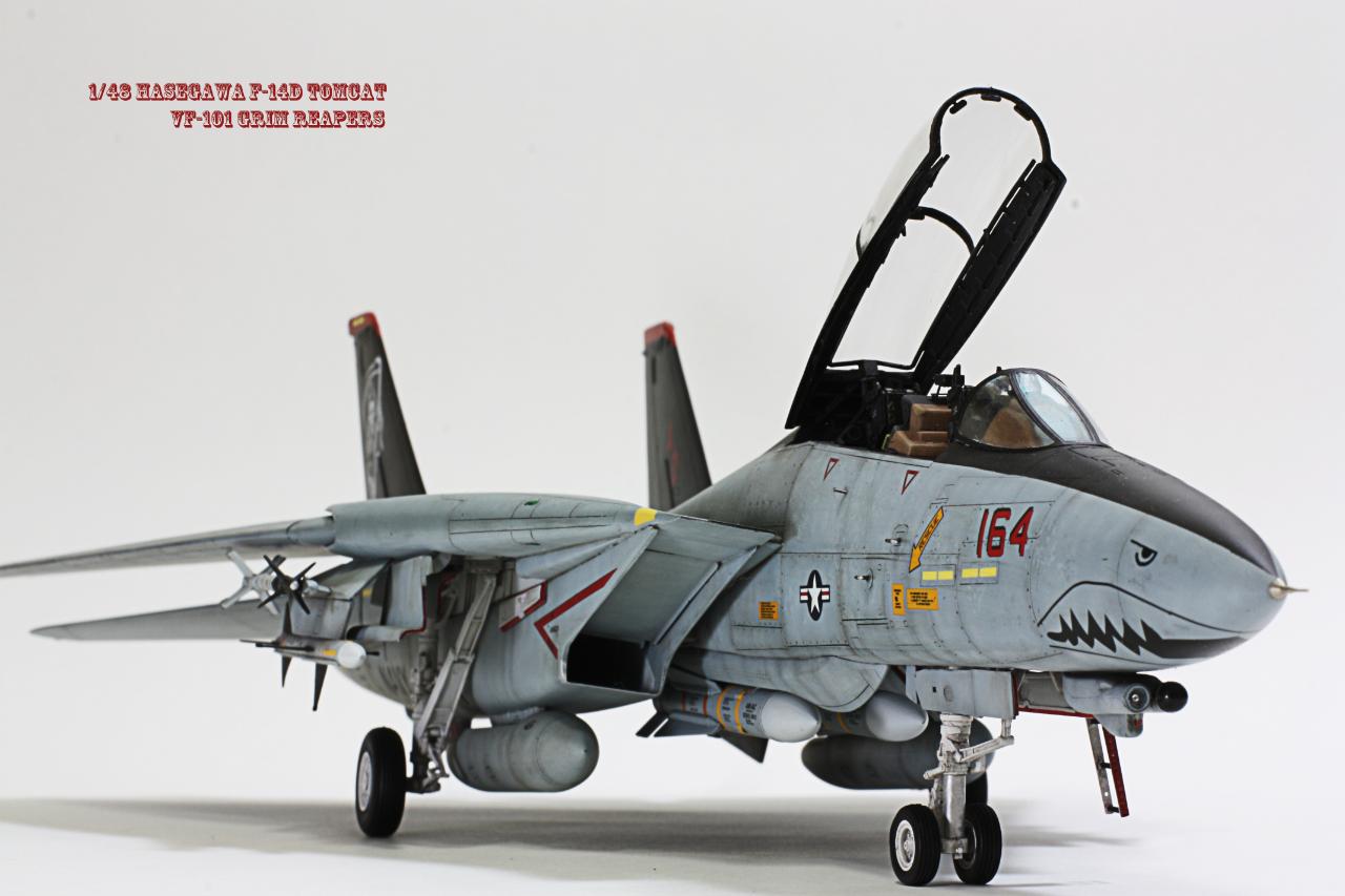 안녕하세요. 오랜만에 MMZ에서 인사드립니다. 수년 전 이곳 중고장터에서 구입한 하세가와 F-14D를 물끄러미 바라보다 뭔가에 홀린 듯 만들어 버렸습니다. 간만에 잡은 프라가 하세가와 F-14라니... 제작 시 엄청난 짜증으로 인해 타미야 F-14를 질러버렸습니다. 결국 너무 오랜 세월 동안 몹쓸데칼로 변질된 하세가와 데칼은 버려버리고 타미야 킷에 들어있는 Grim Reapers 데칼을 빌어다 적용하였습니다.