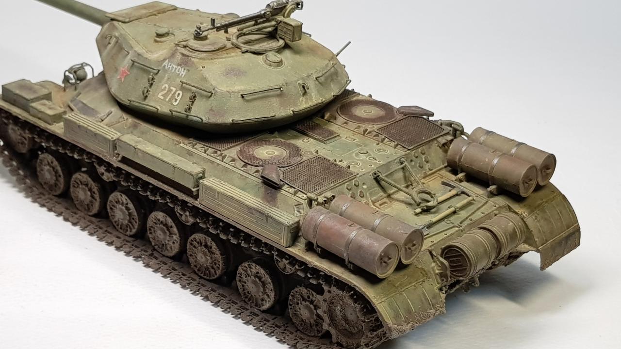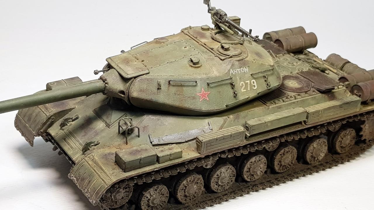 주포는 보통의 IS 중전차 시리즈의 주포인 D-25T 122mm 주포이지만, 여기서는 OBJ.279의 주포로 교체 했습니다. 나름 월드오브탱크에 등장하는 버전으로 보여주려 했는데, 나중에 알고 보니 월탱버전의 122mm M62-T2(T-10의 주포)와는 모양만 비슷하지 구경도 다른 (130mm) 포더군요.