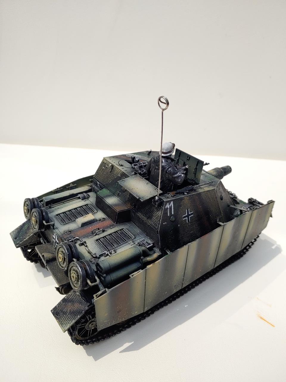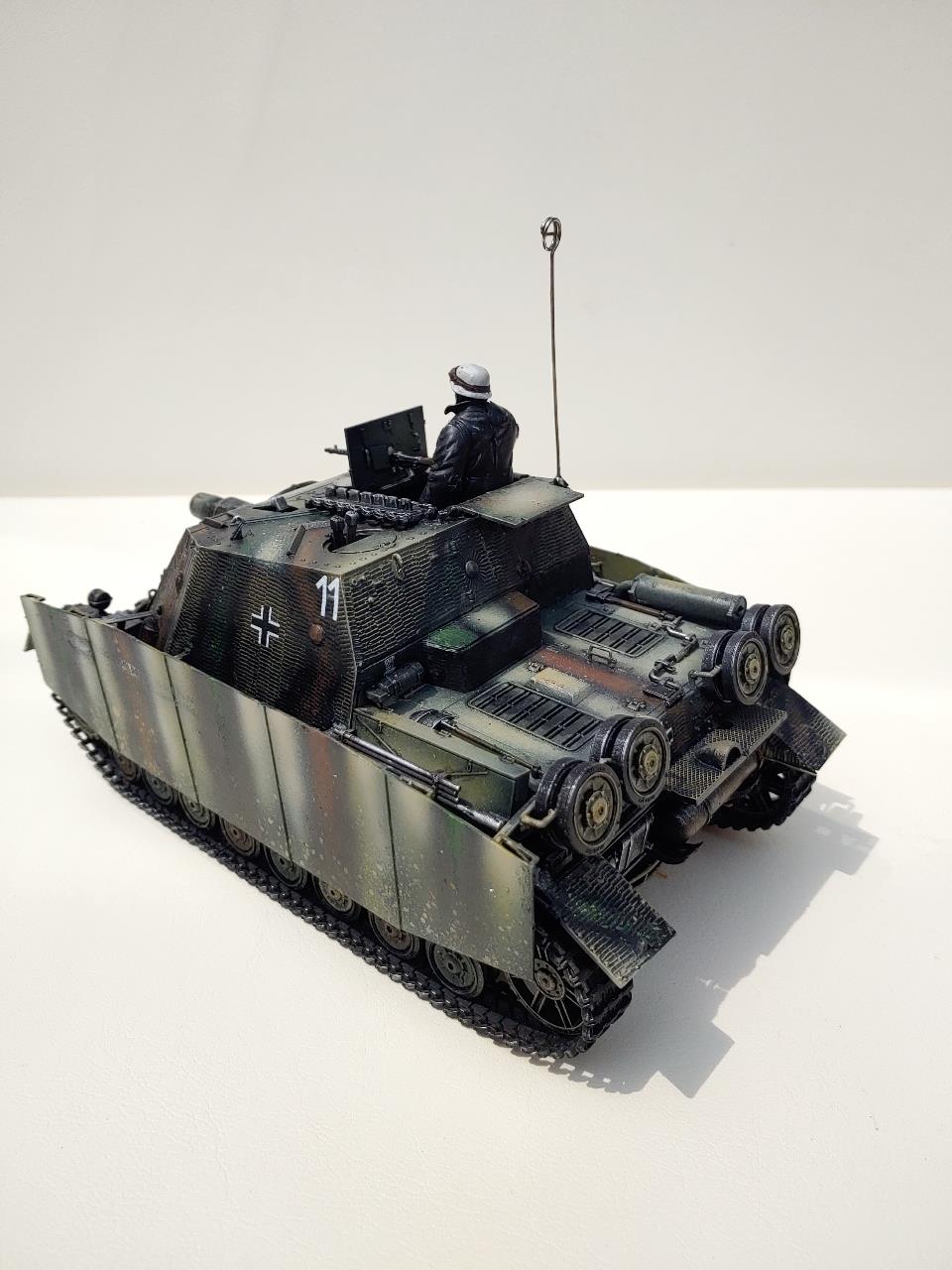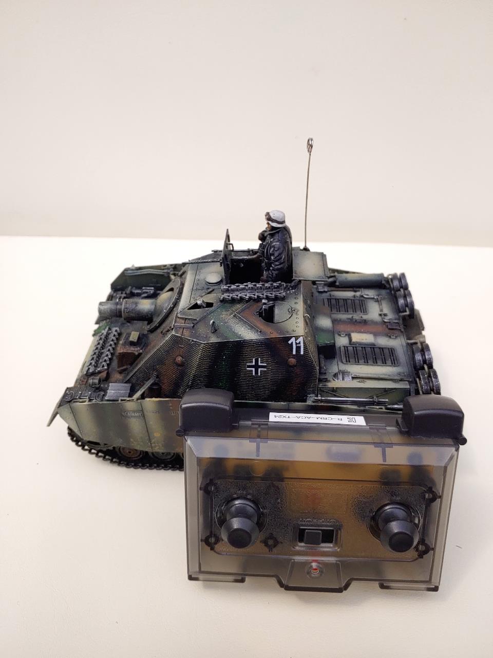 그냥 아카데미 무선조종탱크의 부품들을 브롬베어에 적용하였습니다.R/C로개조시 하단은 브롬베어의것은 쓰지못합니다.브롬베어와 하단이 같은 지금나오는 버젼이아닌 예전에나온 4호전차에서 가져왔고 고무제트랙은 브롬베어의것이고 앞의 로드휠도 브롬베어의것입니다.4호전차의 앞의 로드흴은 섬세하지못해 고무와 이가 잘안맞아서 다듬어주지안으면 궤도가 이탈할것 같습니다.처음으로 찌메리트 전사지를 사용하였는데 엉키는바람에 많이 애먹었습니다 한번에 쓸어내리면서 절대 손을 이곳저곳움직이지말고 균형을 잡아야 꼬이지안더군요 그리고 조립전에 찌메리트를 적용해야는데 조립이 끝난뒤에 붙이느라 무지애먹었습니다.중간중간 날려먹었는데 그래도 이정도면 만족합니다.다음에하면 잘할것 같습니다.R/C느낌이 나게 안테나도 기존R/C의 안테나를 붙여보았습니다.