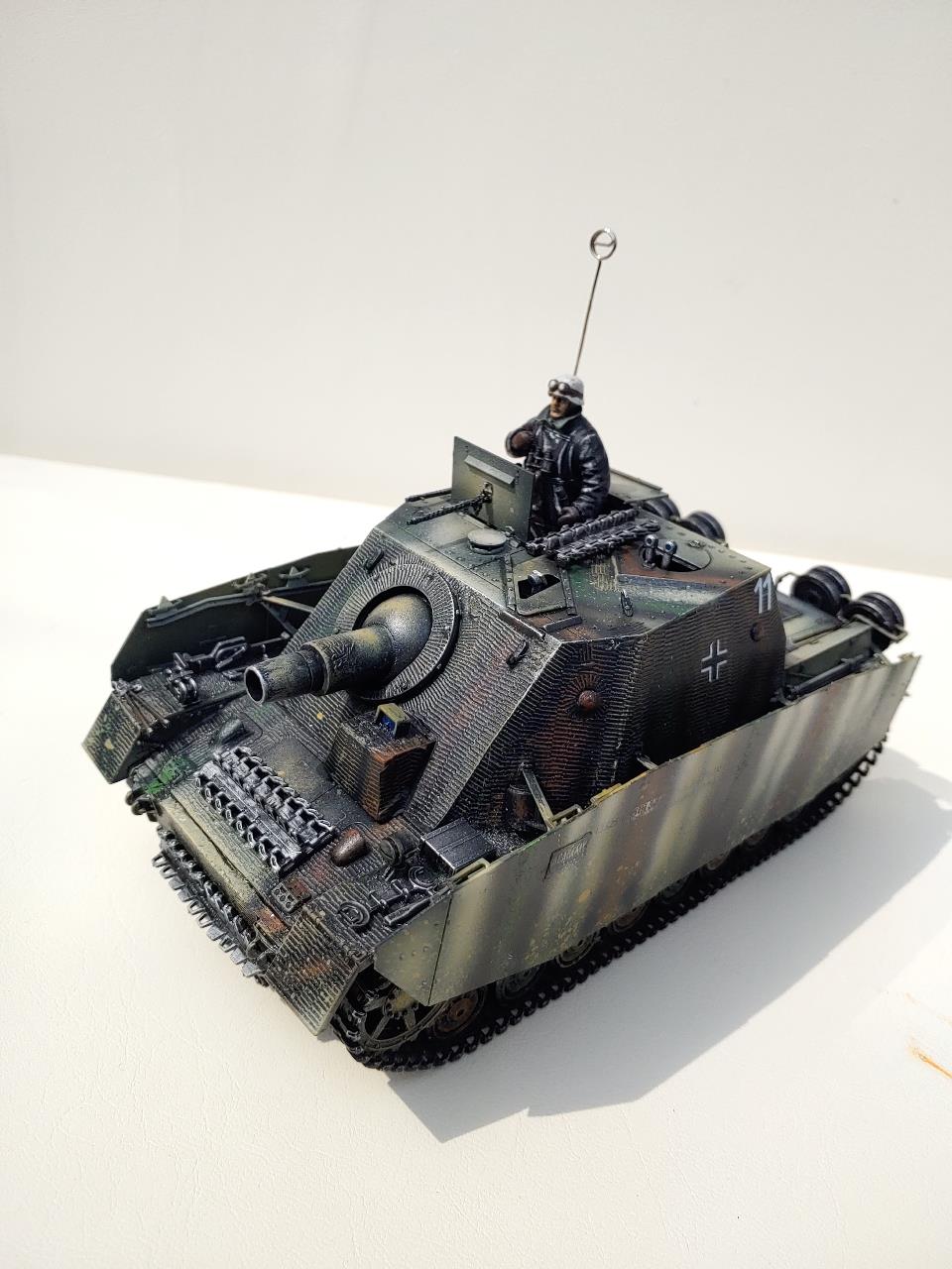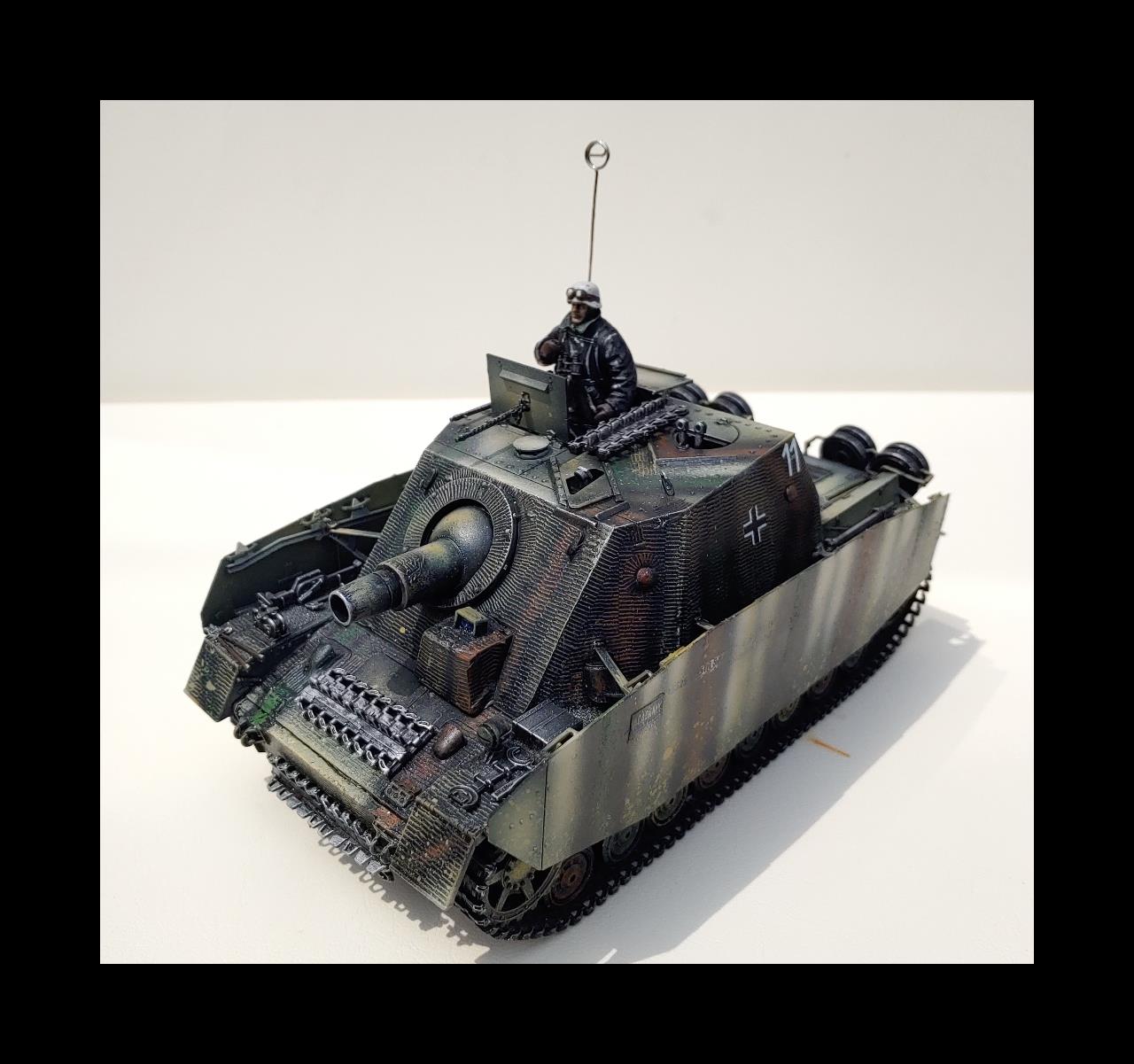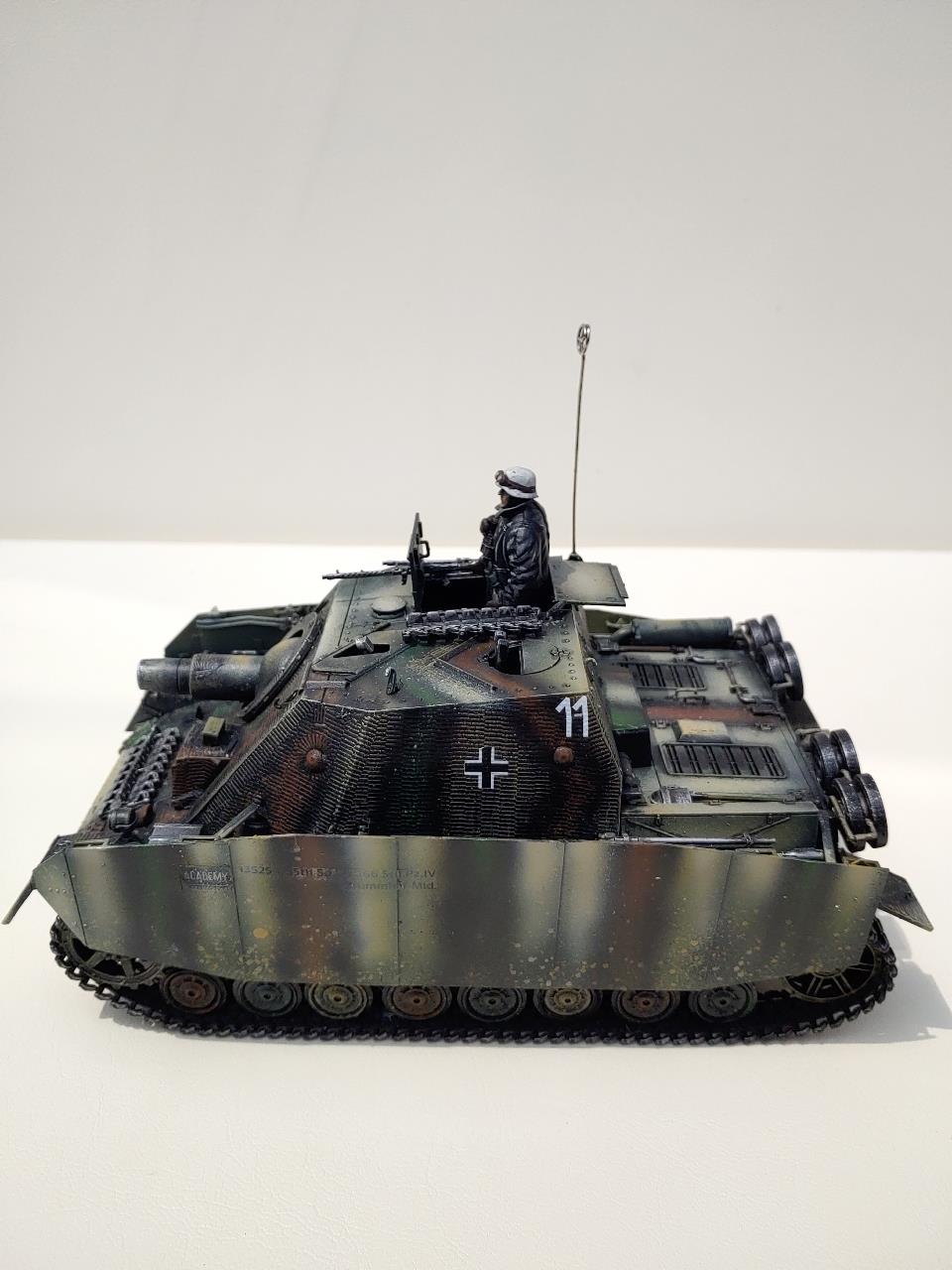 그냥 아카데미 무선조종탱크의 부품들을 브롬베어에 적용하였습니다.R/C로개조시 하단은 브롬베어의것은 쓰지못합니다.브롬베어와 하단이 같은 지금나오는 버젼이아닌 예전에나온 4호전차에서 가져왔고 고무제트랙은 브롬베어의것이고 앞의 로드휠도 브롬베어의것입니다.4호전차의 앞의 로드흴은 섬세하지못해 고무와 이가 잘안맞아서 다듬어주지안으면 궤도가 이탈할것 같습니다.처음으로 찌메리트 전사지를 사용하였는데 엉키는바람에 많이 애먹었습니다 한번에 쓸어내리면서 절대 손을 이곳저곳움직이지말고 균형을 잡아야 꼬이지안더군요 그리고 조립전에 찌메리트를 적용해야는데 조립이 끝난뒤에 붙이느라 무지애먹었습니다.중간중간 날려먹었는데 그래도 이정도면 만족합니다.다음에하면 잘할것 같습니다.R/C느낌이 나게 안테나도 기존R/C의 안테나를 붙여보았습니다.