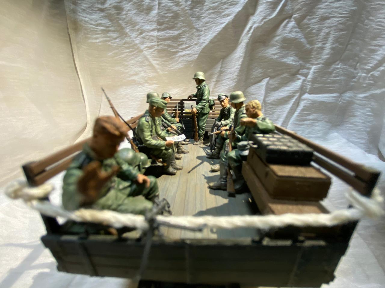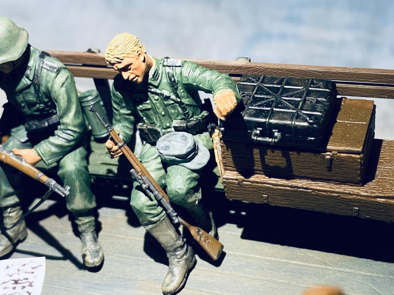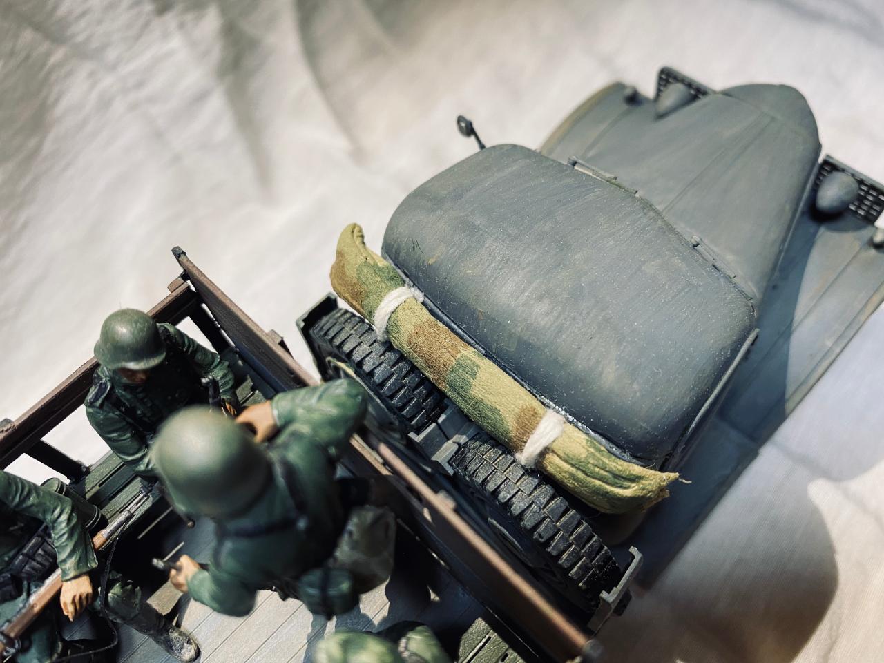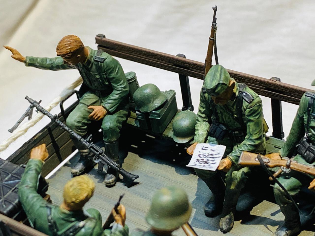 소련제 트럭을 독일 노획버전으로 해서 차체는 타미야아크릴 저먼그레이와 흰색소량 섞어서도색해주었고요 웨더링과 인형도색은 타미야 에나멜로 적합한 색으로 작업해주었습니다. 트럭에 뭔가 꽉찬 느낌을 받고 싶어서 인형까지 얹다보니 작업기간이 많이 길어졌네요. 부족한 실력이지만 즐감하시길 바랍니다.