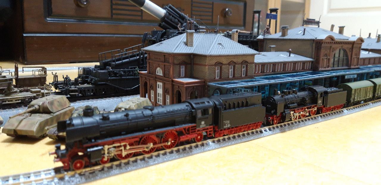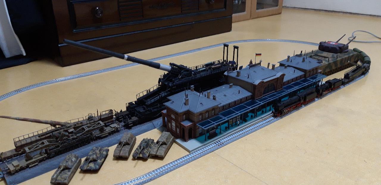 군수공장을 지나는 2차대전 독일기관차를 올려봤습니다. 뒤에 연결된 작은 기차 한개 빼곤 거의 도색과 조립을 필요로 했습니다. 이제 보니 모은게 꽤 됩니다.