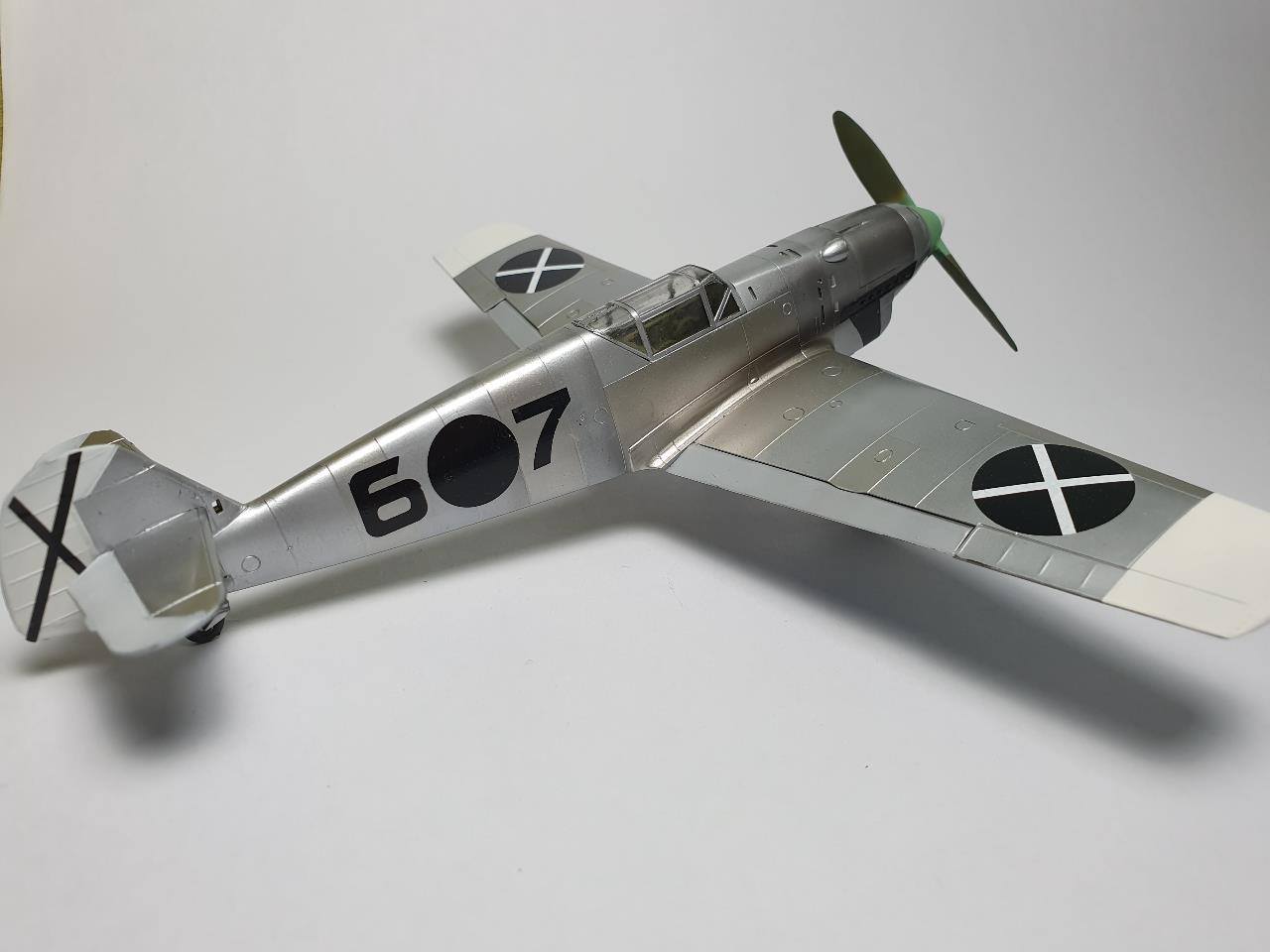 Bf-109의 경우 날개 플랩 등은 캔버스로 만들어져 있다고 알고 있어서 은색에 흰색을 섞어서 칠해줬습니다. 나름 은색 페인트를 칠했다는 가정하에...