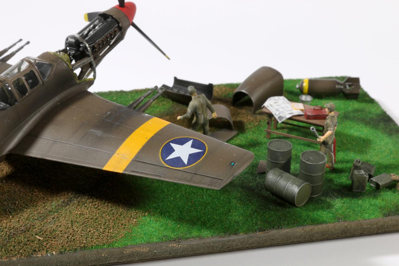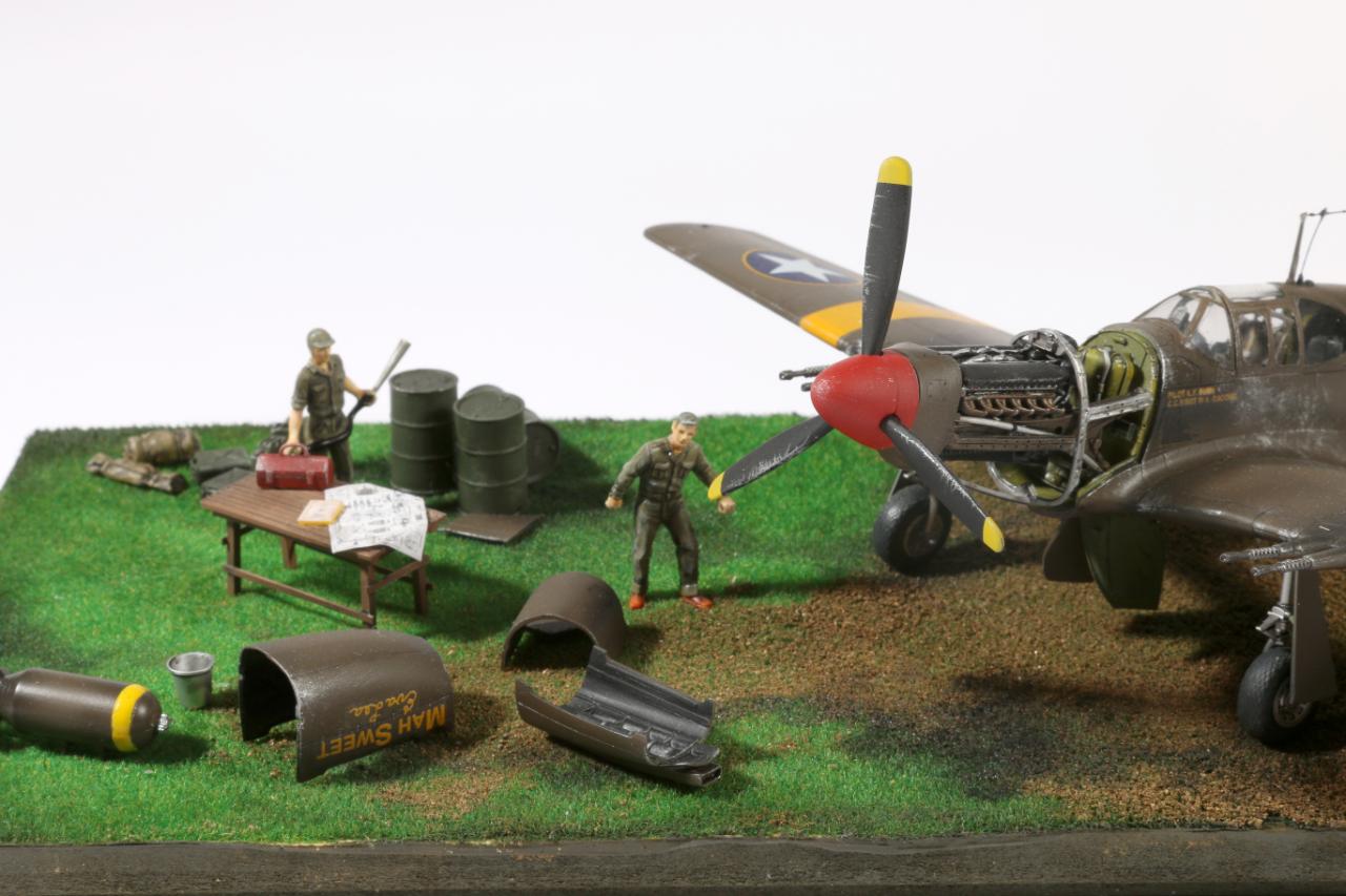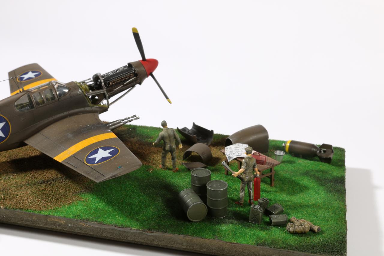 연초에 완성한 에이스제 P-51A와 벨린덴 업데이트셋, 모노그램제 인형, 자작 필드입니다. 벨린덴 레진셋은 오래되어 레진이 말라 고생했네요..아직은 디오라마가 쉽지 않습니다. 사진의 부품들은 자작, 하세제 기름통등 다양한 킷에서 가져와서 만들었습니다. 역시 인형은 어렵네요..더 엽습해야할 듯합니다..하단의 아크릴베이스는 블랙아크릴 재단후 커팅시트로 제작했습니다.ㅎㅎ 그럼 사진 나갑니다...