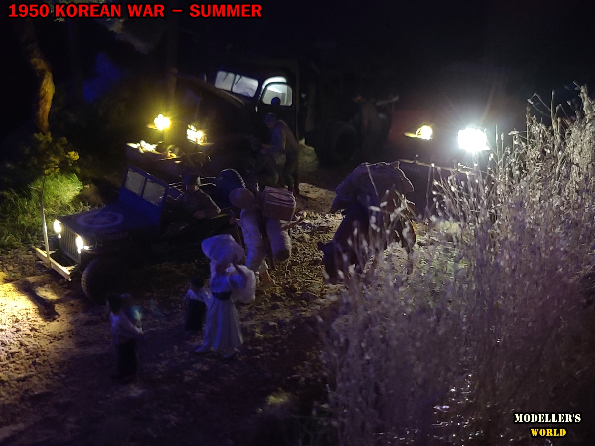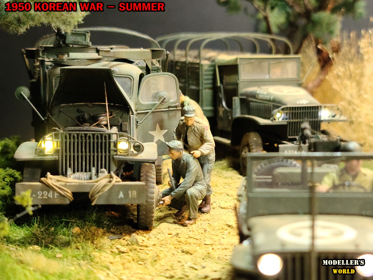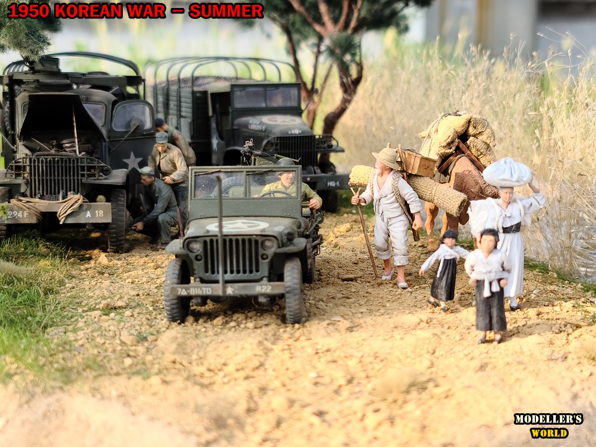 기존의 다른 디오라마에 있던 미군 트럭(하비보스와 타미야)과 피규어를 옮겨왔으며 윌리스짚(타미야)은 새로 작업하여 올려 주었습니다.