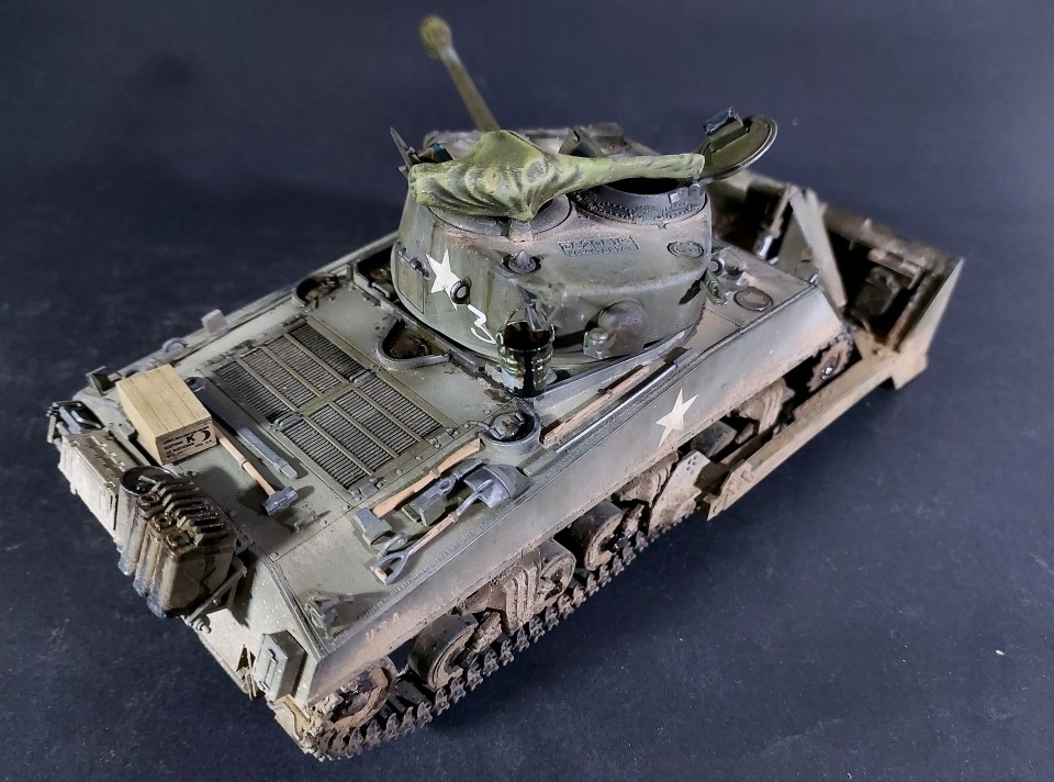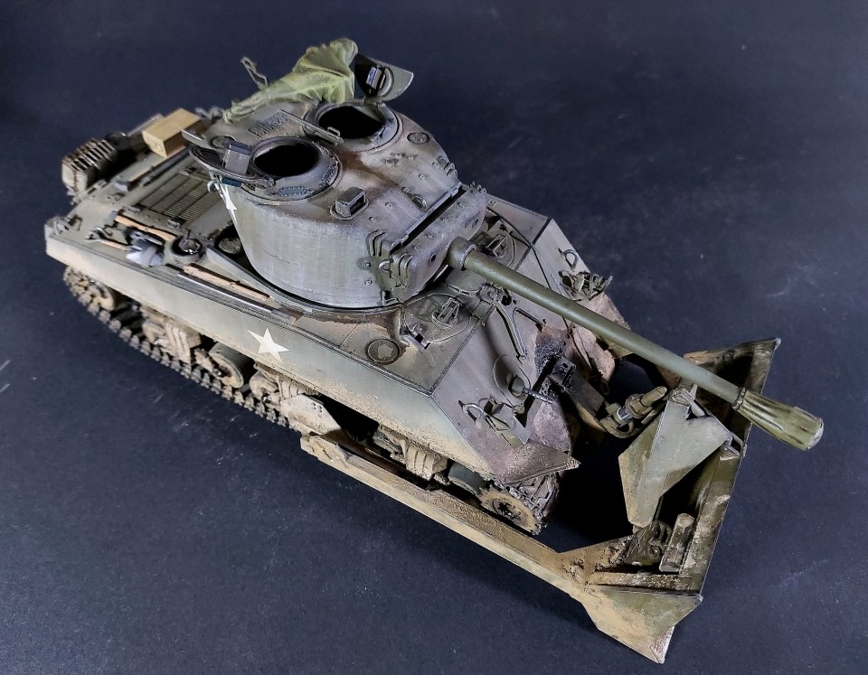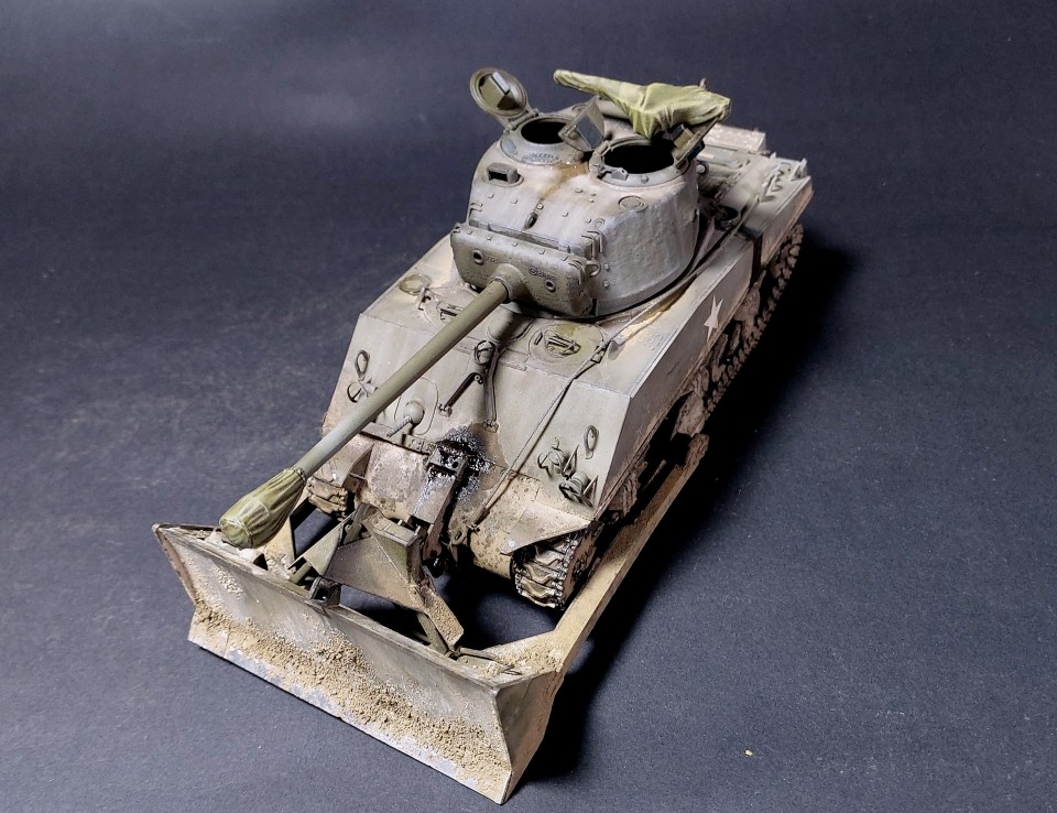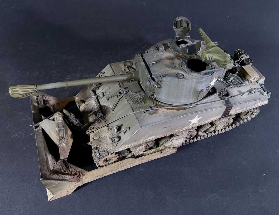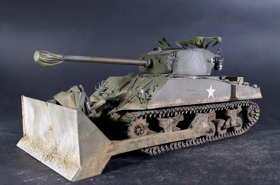 한국전쟁 70주년 기념 프로젝트 3번째 작품입니다. 드래곤 M4A3 VVSS 76밀리 키트에 아카데미 도져 셔먼의 도저부분을 빌려와 제작하였습니다. 아카데미 도저셔먼의 도저 형식은 HVSS용 M1A1 도저라서 바로 사용할 수 없어 VVSS용 M1 도저에 맞춰 폭을 줄여 주었습니다.