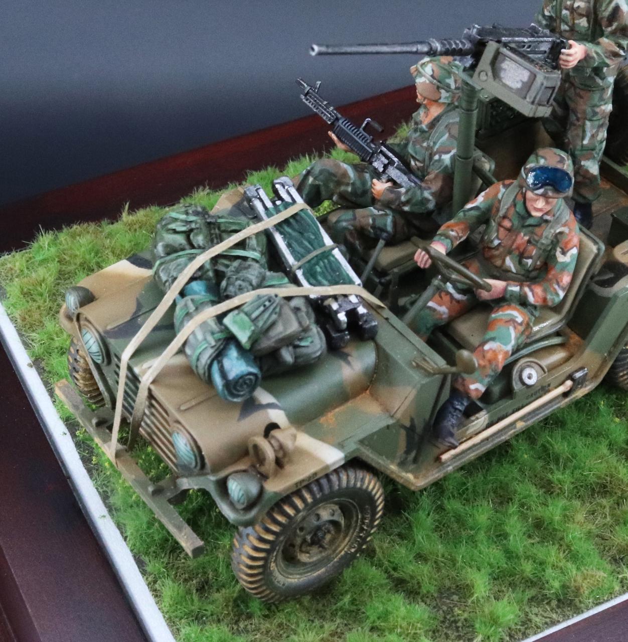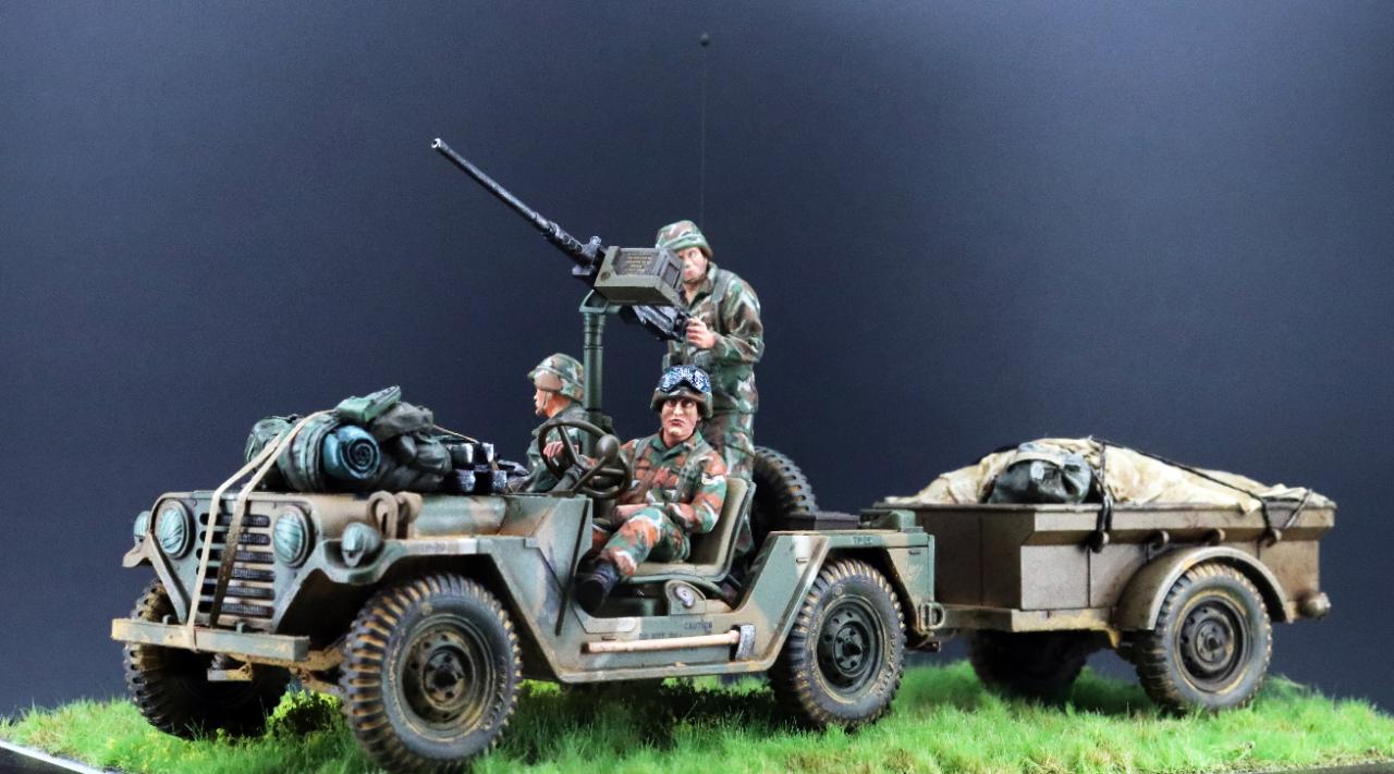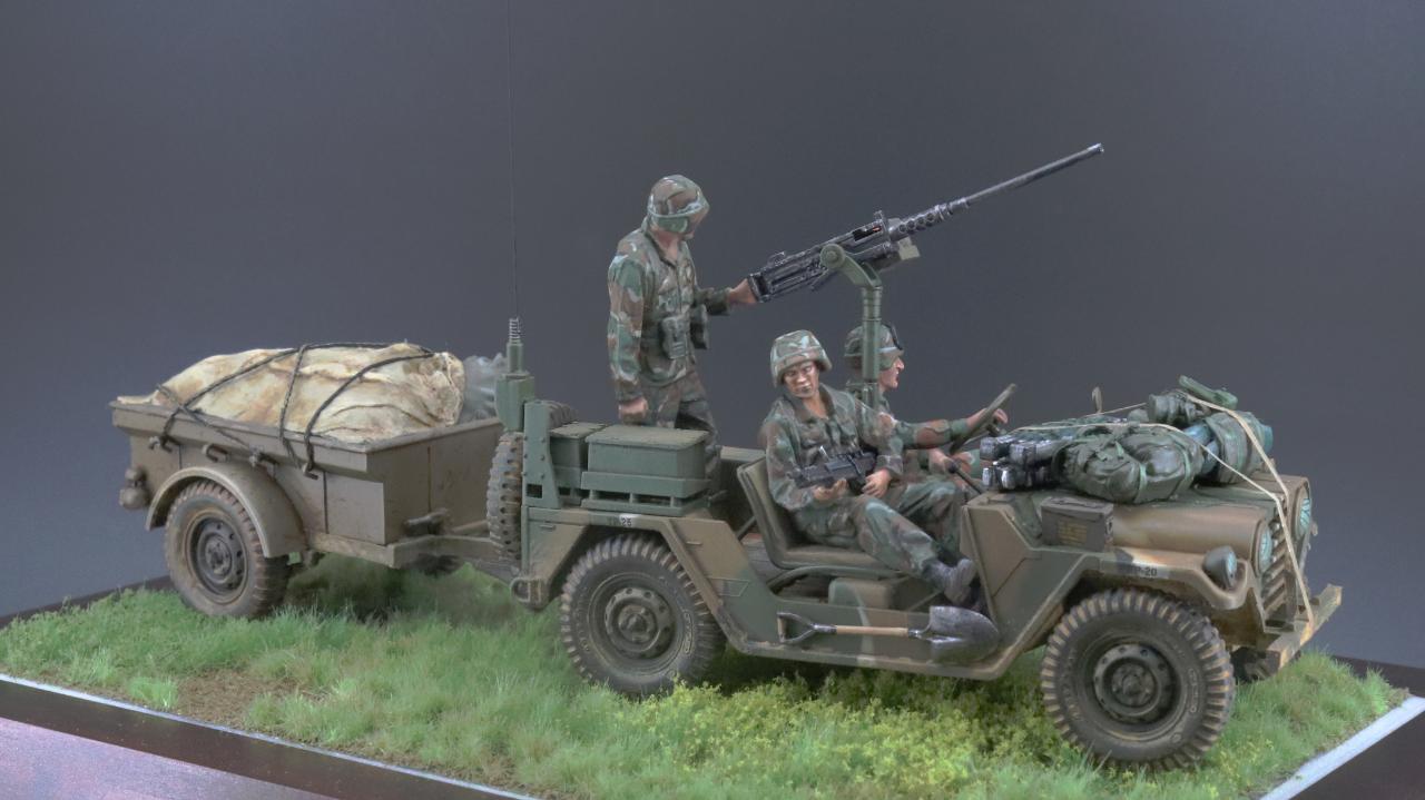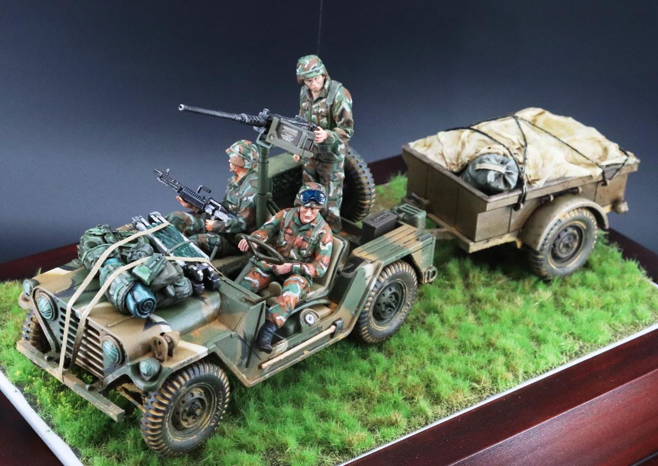 타미야의 M151 그레나다 침공작전 킷에 트레일러와 보닛에 군장등을 추가하여 작업한 작품 입니다.