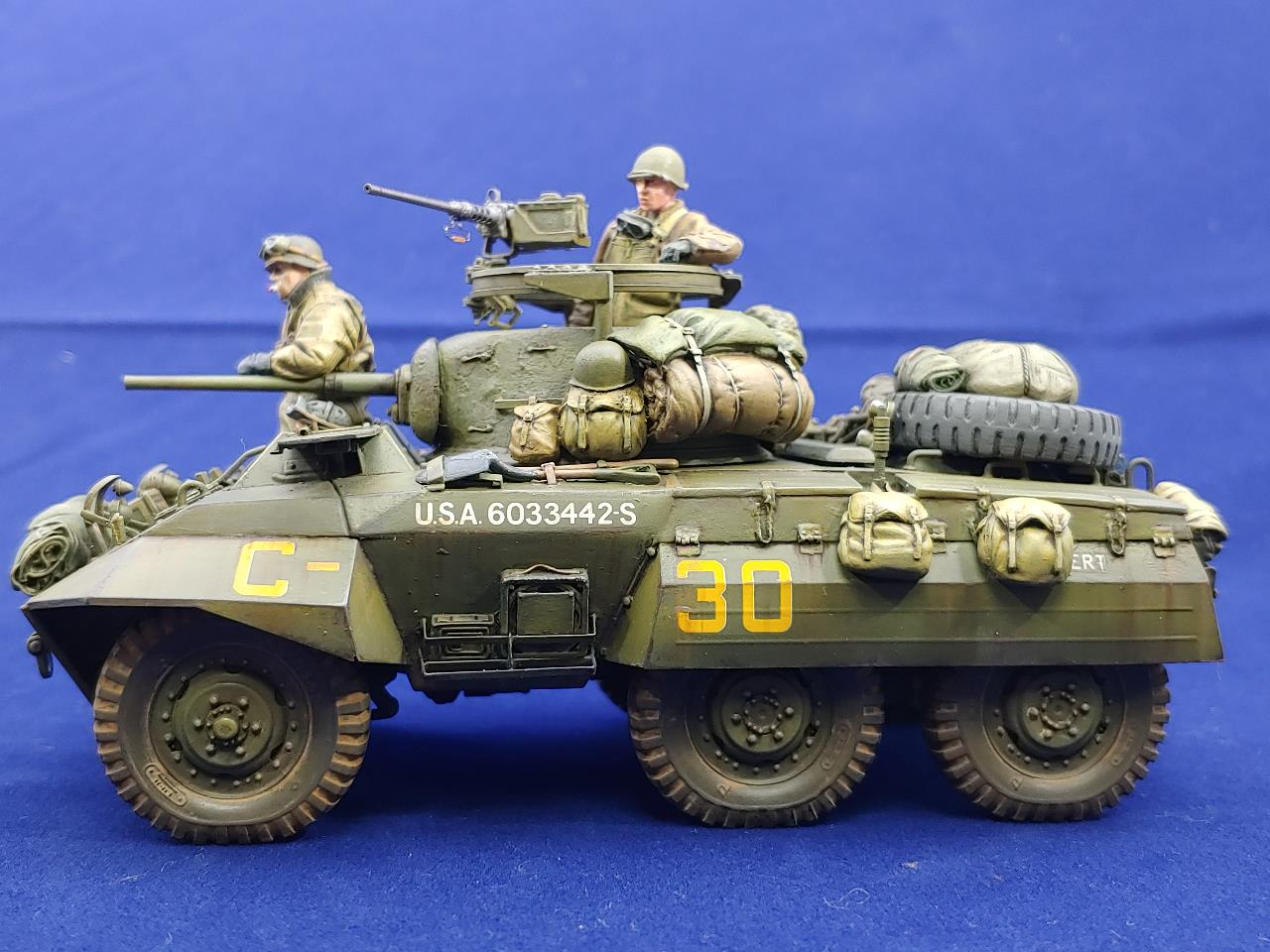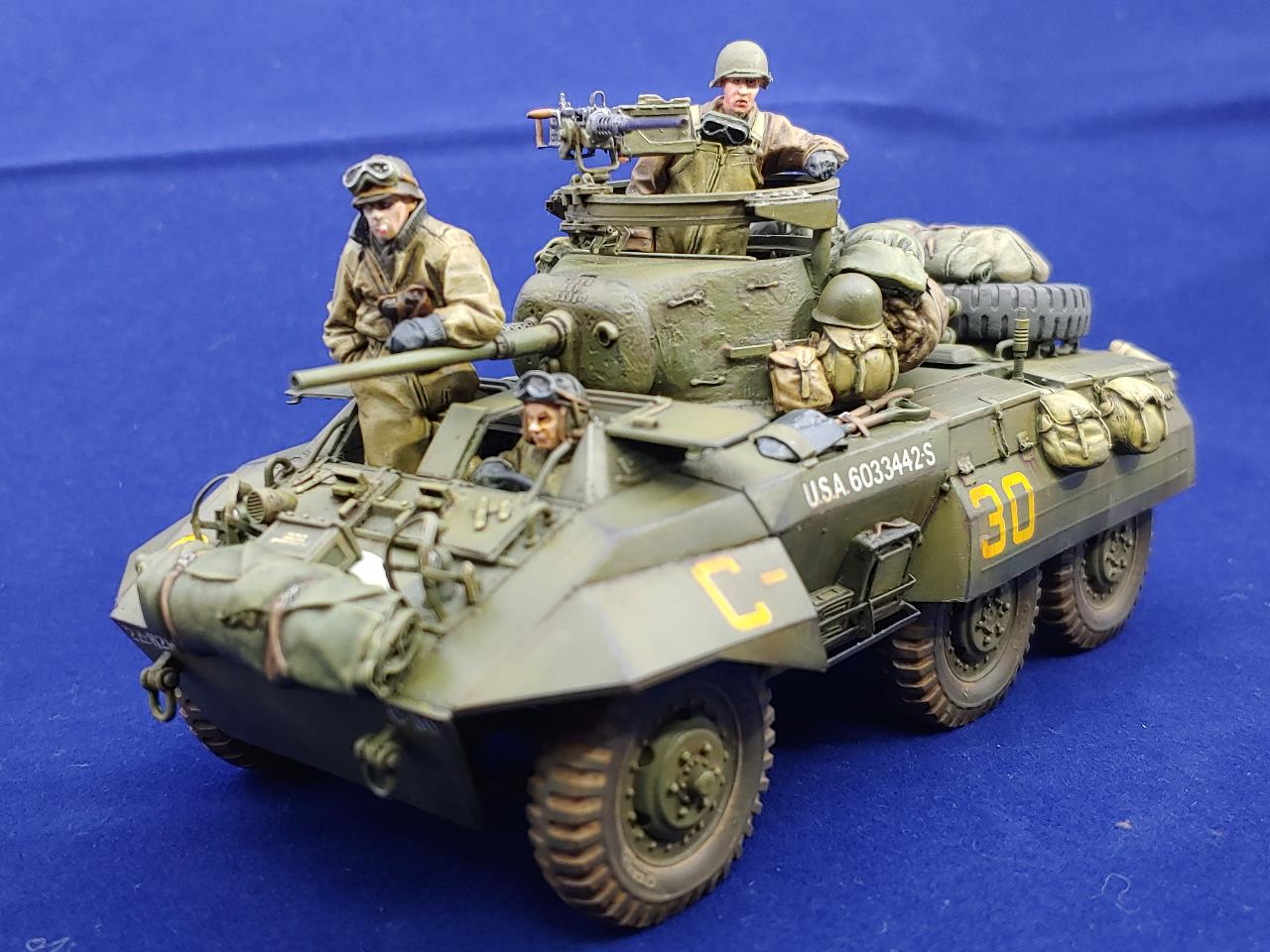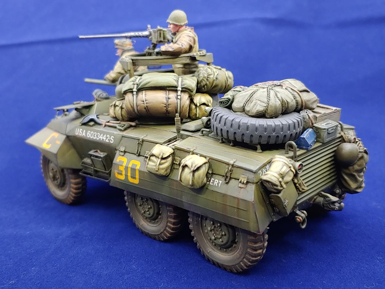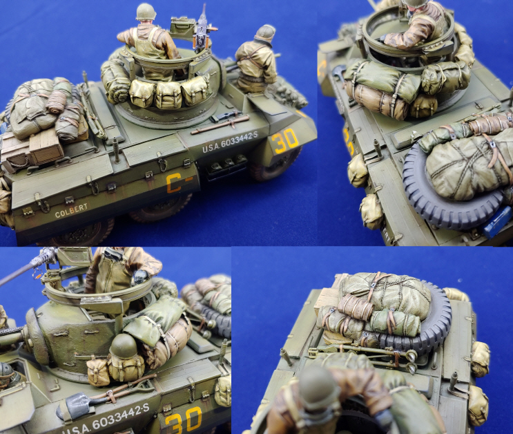 Italeri제 M8 그레이하운드 장갑차에 Voyager Model Photo-Etching을 적용하여 조립한 뒤에 DEF의 레진제 바퀴와 Legend Production와 Value Gear제 장비품 그리고 The Bodi miniauture의 인형3인방을 태워보았습니다.